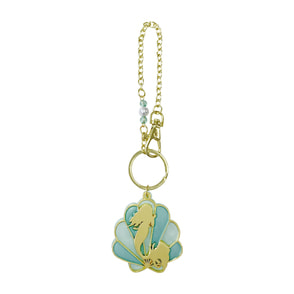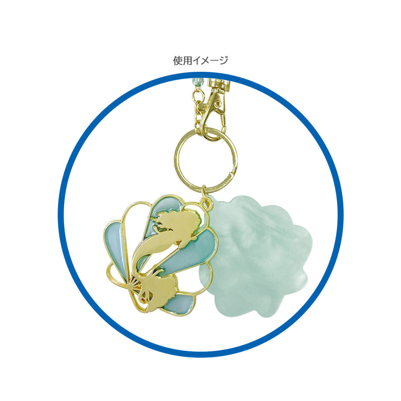 ステンドグラス風のメタルチャームとマーブルアクリルが涼しげなバッグチャーム●全長19cm(金具含む) チャーム:W5×H5.5cm●メタル + アクリル製 チェーン、2重カン、ナスカン、アクリルビーズ、パールビーズ付き●中国製