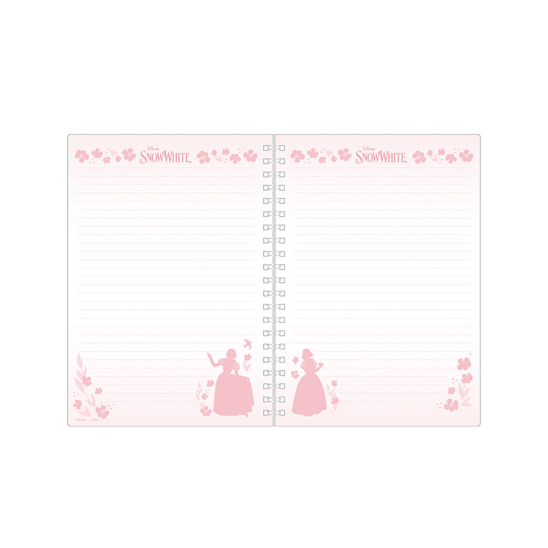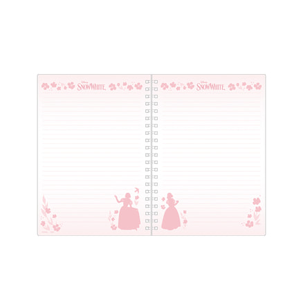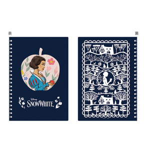 りんご型の窓あき部分から、白雪姫のイラストが見えるおしゃれなリングノートです。