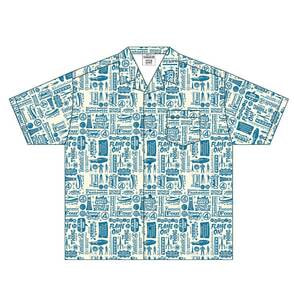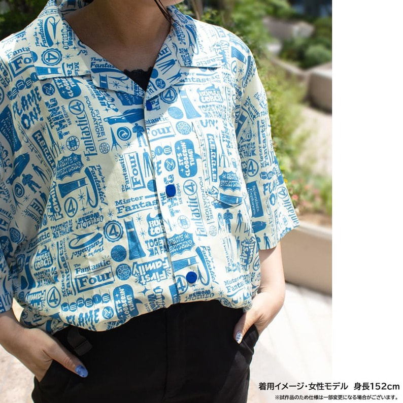 爽やかなカラーとキャラクターやアイコンの総柄がどこから見ても映える、「ファンタスティック・フォー」の総柄プリントシャツ。