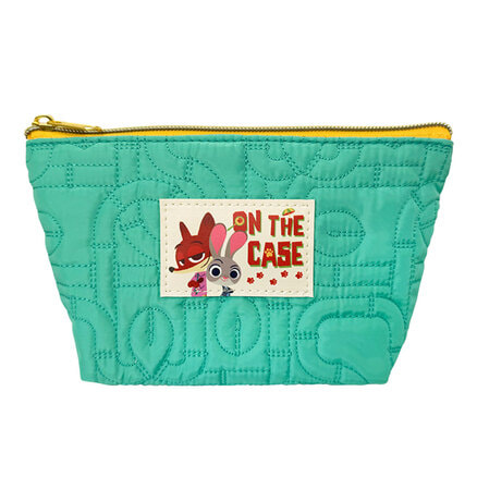 キルト部分にオリジナルのモチーフが施されたキルティングポーチ。