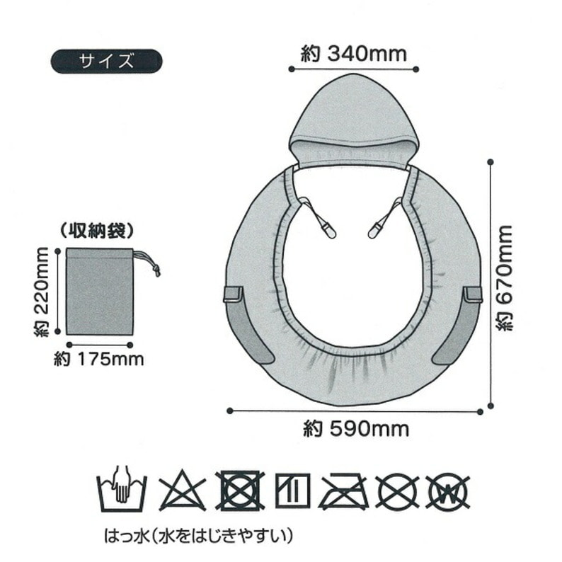 赤ちゃんを雨や風から守る!ベビーレインケープ。 クリップで簡単装着可能!ゴム付きで風に強い! ベビーカーにも抱っこ紐にも使える便利な2WAYタイプ。 抱っこ紐に付けると、頭からすっぽり全身をカバー出来ます! ベビーカーに付けると、雨よけと防寒対策としても活躍します! 両サイドに反射テープ付きポケットも付いています。 急な場面にも携帯出来る便利な収納袋付き。 【商品サイズ(約)】 対応ベビーカー:A型、B型兼用 サイズ:340×670×590mm、袋サイズ:横175×縦220mm 本体:96g、袋:6g 【品質表示】 <材質>本体:ポリエステル100%(アクリルコーティング) ※防水加工はされておりませんので、水分が染み出てくる場合があります。 ※洗濯機や乾燥機、ドライクリーニングは絶対にしないでください。 ※本品のはっ水効果は永久ではありません。着用・洗濯により、撥水効果は低下します。 ●中国製 ※掲載画像はあくまでイメージです。実際の商品とは色、柄等が異なる場合がございます。何卒ご了承ください。