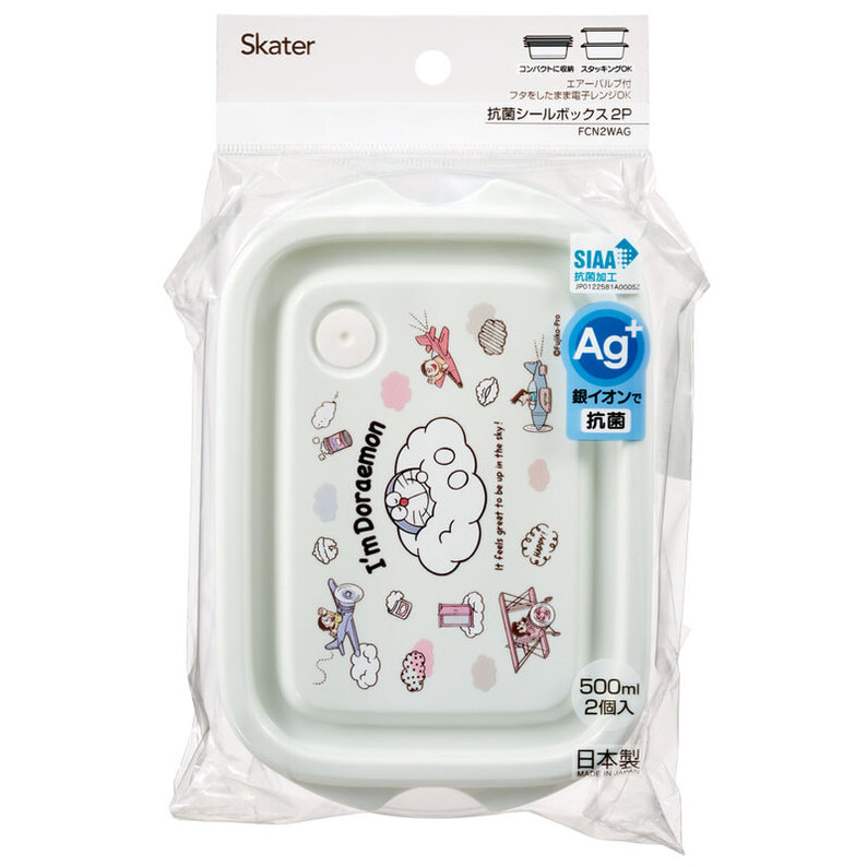 ○●○新柄!I’m Doraemon お空さんぽ●○● フタをしたまま電子レンジ加熱が出来るプラスチック容器です♪ ご飯やおかずを保存したり、お弁当箱として使っても便利! 容量500ml、お得感のある柄違い2個セット!フタの溝に容器の底面がはまるので2つ重ねて置くこともできます。 ※注意!完全密封ではありませんので汁気のあるものを入れると漏れる可能性がありますのでご注意ください。 【商品サイズ(約)】 サイズ:178mm×119mm×55mm 重量:50g(1個当たり) 【品質表示】 フタ・本体:ポリプロピレン(耐熱温度-20~140度) エアーバルブ:シリコーンゴム(耐熱温度-20~140度) 使用抗菌剤の種類:無機抗菌剤 加工方法:練込 加工部位:全体 SIAAマークはISO22196法により評価された結果に基づき、抗菌製品技術協議会ガイドラインで品質管理・情報公開された製品に表示されてます。 ※すべての細菌の増殖を抑制するものではありません。 ※自動食器洗浄機・食器乾燥機での使用はしないでください。 ※直火・オーブン及びグリルでの使用をしないでください。 ●日本製 ※掲載画像はあくまでイメージです。実際の商品とは色、柄等が異なる場合がございます。何卒ご了承ください。