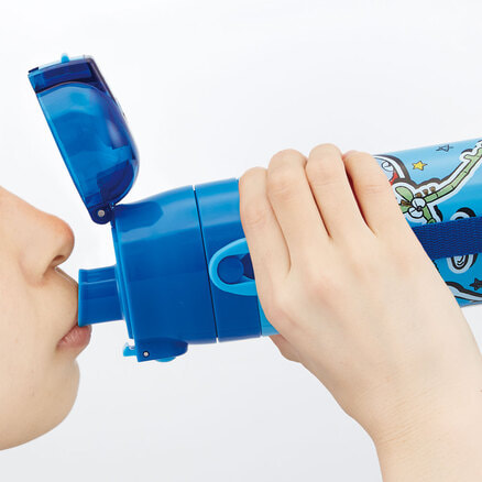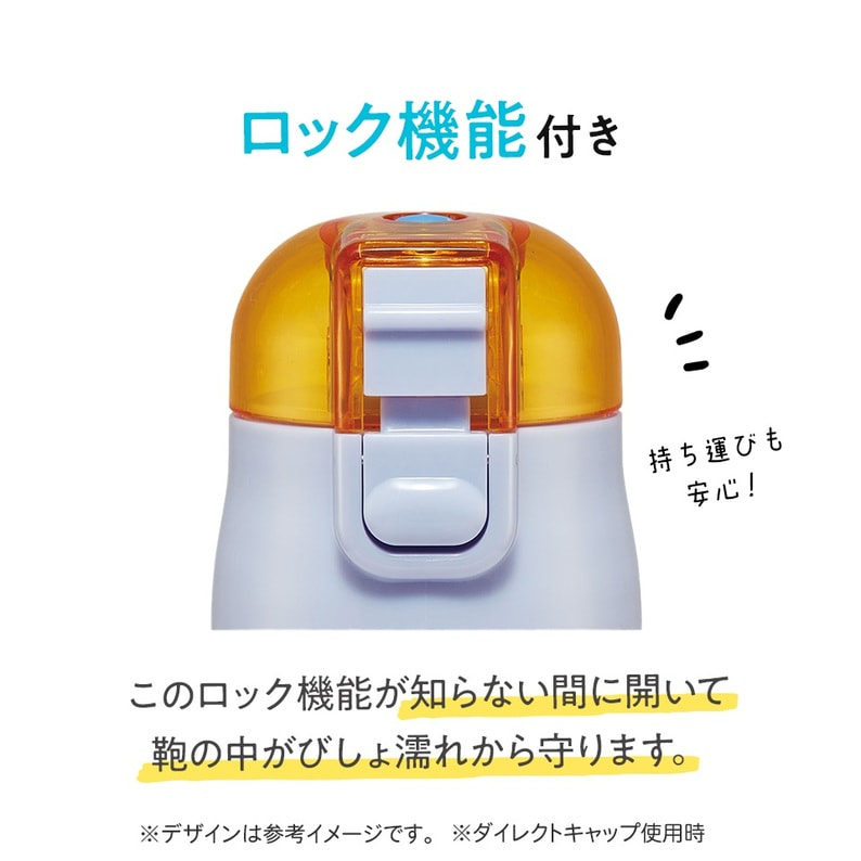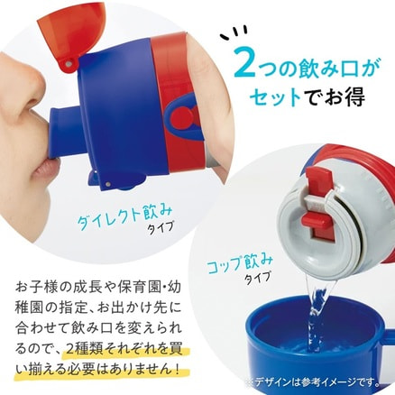 学校によっては水筒のタイプ指定がある場合も・・・。 そんな時には2通りの使い方ができるこちらをオススメ★ 2種類ある飲み口を付け替えて、直接口を付けて飲めるダイレクト飲みタイプと、温かい飲み物もOKのコップ飲みタイプで使い分け! そのまま飲めるダイレクトキャップユニットには誤作動による開閉を防ぐロック機能付き。 氷が入れやすいワイド口径。ネームプレート付きのショルダーベルト&お名前シール付き。 見つけやすいカラーパッキン仕様。 【保温効力】 (中栓使用時)74度以上(6時間) 【保冷効力】 (中栓使用時)8度以下(6時間) (キャップユニット使用時)9度以下(6時間) 【ご注意】 ダイレクトタイプでご使用時には、熱い飲み物を入れて飲まないで下さい。 (火傷する恐れがあります) ◆電子レンジ、食洗機、乾燥機には【使用不可】 【商品サイズ(約)】 コップ飲みタイプ:直径68mm×高さ197mm ダイレクトタイプ:直径68mm×高さ210mm ・容 量 コップ飲みタイプ:350ml ダイレクトタイプ:410ml ・重 量:260g 【品質表示】 内びん・口がね:ステンレス鋼 胴部:ステンレス鋼(アクリル樹脂塗装) コップ・中栓・フタ:ポリプロピレン キャップ:飽和ポリエステル樹脂 パッキン:シリコーンゴム 底板:熱可塑性エラストマー ※自動食器洗浄機・食器乾燥機は使用しないでください。 ※ダイレクト飲みの際は保冷専用です。熱い物を入れて飲まないでください。直接飲むと口内やけどをする場合があります。 ●中国製 ※掲載画像はあくまでイメージです。実際の商品とは色、柄等が異なる場合がございます。何卒ご了承ください。