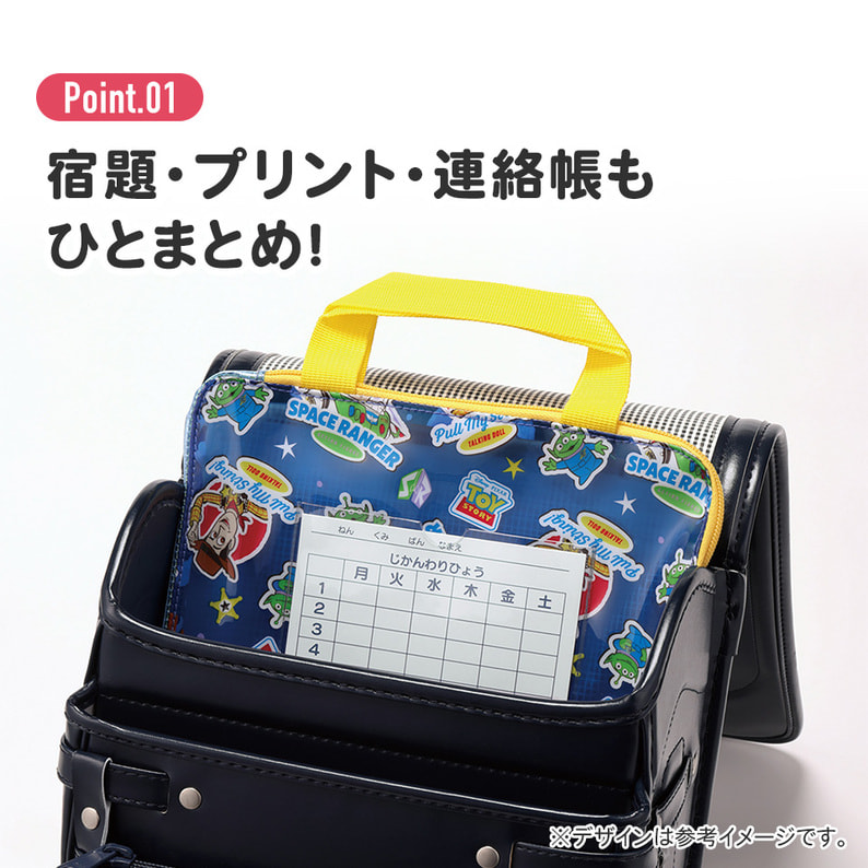 宿題・プリント・連絡帳もひとまとめ! 大きく開いて出し入れしやすい!仕切付き連絡袋! プリントの折れ・シワ防止や整理に便利な仕切付き! 表面は中身がよく見えるクリア素材! 大きく丈夫なファスナー引き手。 カバンから取り出しやすい持ち手付き。 名前&時間割表付き。 【商品サイズ(約)】 サイズ:240×340×15mm(持ち手含まず) 【材質】 本体表面:ポリ塩化ビニル 本体裏面:ポリ塩化ビニル+ポリエステル 仕切り:ポリプロピレン ファスナー:ナイロン ※一部のランドセルにはサイズが合わない場合があります。 ●中国製 ※掲載画像はあくまでイメージです。実際の商品とは色、柄等が異なる場合がございます。何卒ご了承ください。 ※画像にあるランドセル等は付属いたしません。