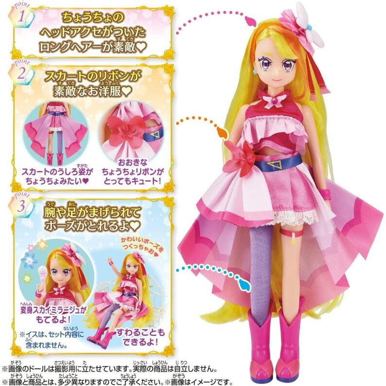 ボリューミーでキュートなサラサラヘアのプリキュアドールです。 手には付属の変身スカイミラージュを持たせることができ、手足も可動するので、ポーズをとらせて様々なごっこ遊びが楽しめます! 【セット内容】 ・キュアバタフライ本体(1体) トップス、スカート、パンツ、靴下、靴、ヘアアクセサリー、イヤリング、足リボン、ブレスレット着用 ・変身スカイミラージュ(1個) (本商品に付属のセット内容以外、すべて別売りです。) ●対象年齢:3歳以上 ©ABC-A・東映アニメーション