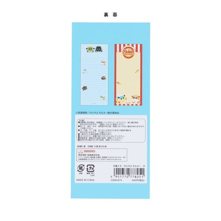 『PUI PUI モルカー』より付箋メモが登場! たくさん書き込める大きい付箋です♪ ●サイズ:約W65×H145×D4mm ●内 容:2柄×各25枚(計50枚) ●素 材:紙 ●生産国:中国