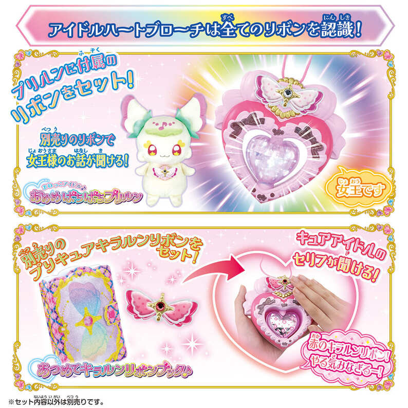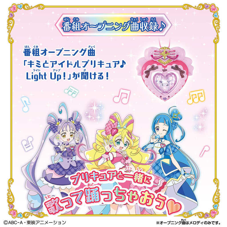 『キミとアイドルプリキュア♪』より、「キミとアイドル変身♥アイドルハートブローチ」が登場! アイドルプリキュアが使用する変身アイテムです。 ハートのミラーボールが光って!回って!楽しい変身アクションが楽しめます。 首から下げられるストラップ付き! また別売りの「プリキュアリボン キュアウインク&キュアキュンキュン」をセットすることで「キュアウインク」「キュアキュンキュン」の変身遊びも楽しめます。 [セット内容] ・アイドルハートブローチ・・・1個 ・プリキュアリボン(キュアアイドル)・・・1個 [使用電池] ・LR44×3個(付属) (本商品のセット内容以外は付属しません。) ●パッケージサイズ:W140×H180×D55mm ●対象年齢:3歳以上 ●原産国:タイ (C)ABC-A・東映アニメーション