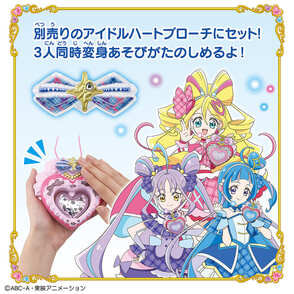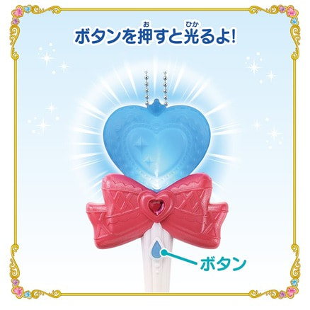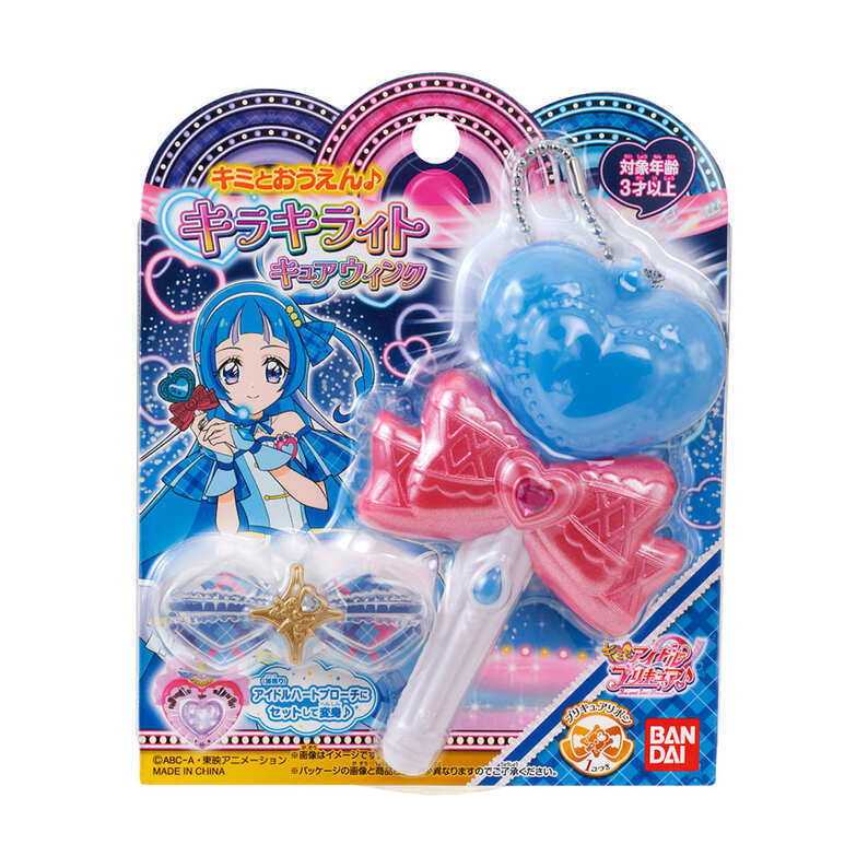 『キミとアイドルプリキュア♪』より、「キミとおうえん♪キラキライト キュアウインク」が登場! 番組内やエンディングにも登場するキラキライトです。 ボタンを押すと光ります。 プリキュアを応援する時に使用したり、ライブステージの盛り上げにも使える応援グッズです♪ サイズは全長約120mm! 付属の「プリキュアリボン」を別売りの「アイドルハートブローチ」にセットすると3人同時変身が楽しめます。 [セット内容] ・キラキライト キュアウインク・・・1個 ・プリキュアリボン(3人同時変身キュアウインクカラーver.)・・・1個 [使用電池] ・LR44×3個(付属) (本商品のセット内容以外は付属しません。) ●パッケージサイズ:W130×H160×D30mm ●対象年齢:3歳以上 ●原産国:中国 (C)ABC-A・東映アニメーション