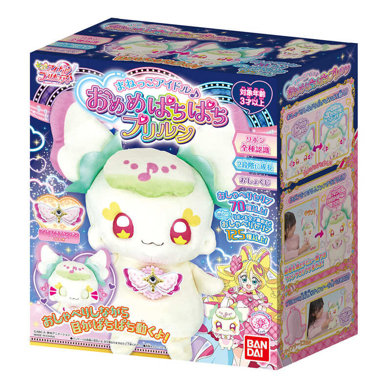 『キミとアイドルプリキュア♪』より、「まねっこアイドル♪おめめぱちぱちプリルン」が登場! おしゃべりしながら目がぱちぱちまばたきします! 「プリキュアリボン」「プリキュアキラルンリボン」を全種認識して、ファンサやおしゃべりをしてくれます。 おしゃべりするセリフは70種以上、別売りの「プリキュアリボン」「プリキュアキラルンリボン」をすべて集めると125種以上のおしゃべりを楽しめます。 プリルンの大好物のウインナーも付属!プリルンに食べさせてあげよう♪ [セット内容] ・おめめぱちぱちプリルン・・・1個 ・プリキュアキラルンリボン(プリルンver.)・・・1個 ・ウインナー・・・1個 ・カバーパーツ・・・1個 [使用電池] ・単4乾電池×3本(別売り) (本商品のセット内容以外は付属しません。) ●パッケージサイズ:W220×H260×D110mm ●対象年齢:3歳以上 ●原産国:中国 (C)ABC-A・東映アニメーション