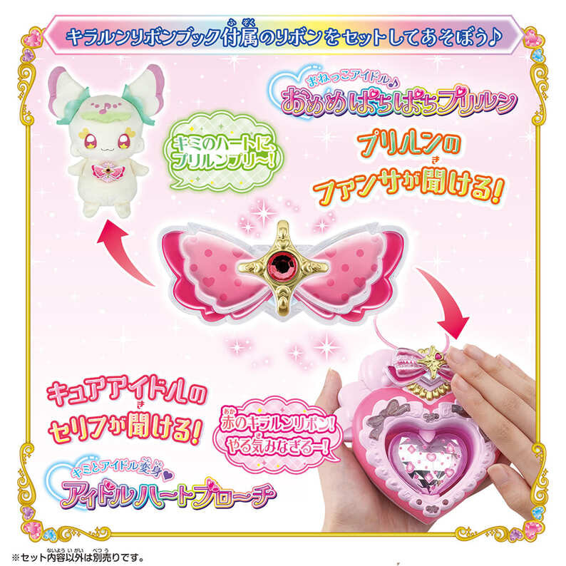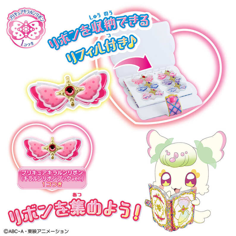 『キミとアイドルプリキュア♪』より、「あつめてキラルンリボンブック♪」が登場! プリキュアのプロフィールや、サインの練習もできるアイドルプリキュアのひみつがつまったキラキラの手帳です。 「プリキュアリボン」「プリキュアキラルンリボン」を集めて収納ができるリフィル付の全28ページ! キラルンリボンも1個付きです。 [セット内容] ・手帳カバー(保護シート1枚付き)・・・1個 ・リボンリフィル・・・1枚 ・プリキュアキラルンリボン(キラルンリボンブックver.)・・・1個 ・リフィル・・・28ページ(14枚) (本商品のセット内容以外は付属しません。) ●パッケージサイズ:W220×H210×D50mm ●電池不要 ●対象年齢:3歳以上 ●原産国:中国 (C)ABC-A・東映アニメーション