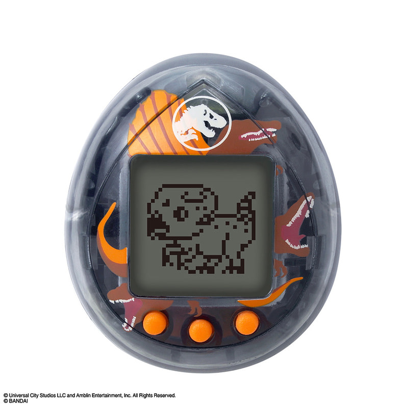 「ジュラシック・ワールド/復活の大地 たまごっち Spinosaurus ver.」は、スピノサウルス3体が覗いているクールなクリアブラックのデザインに!