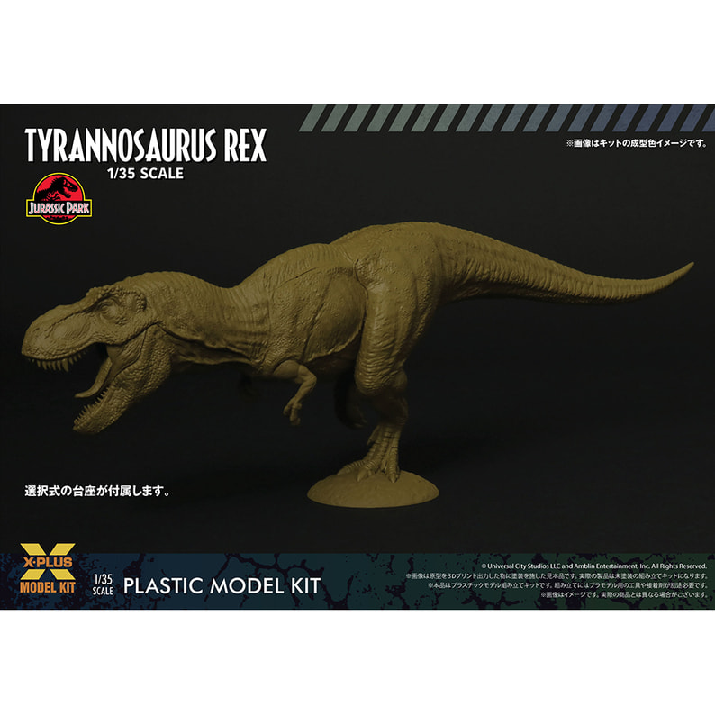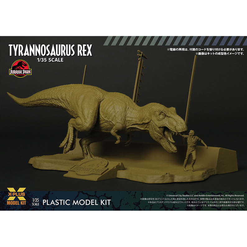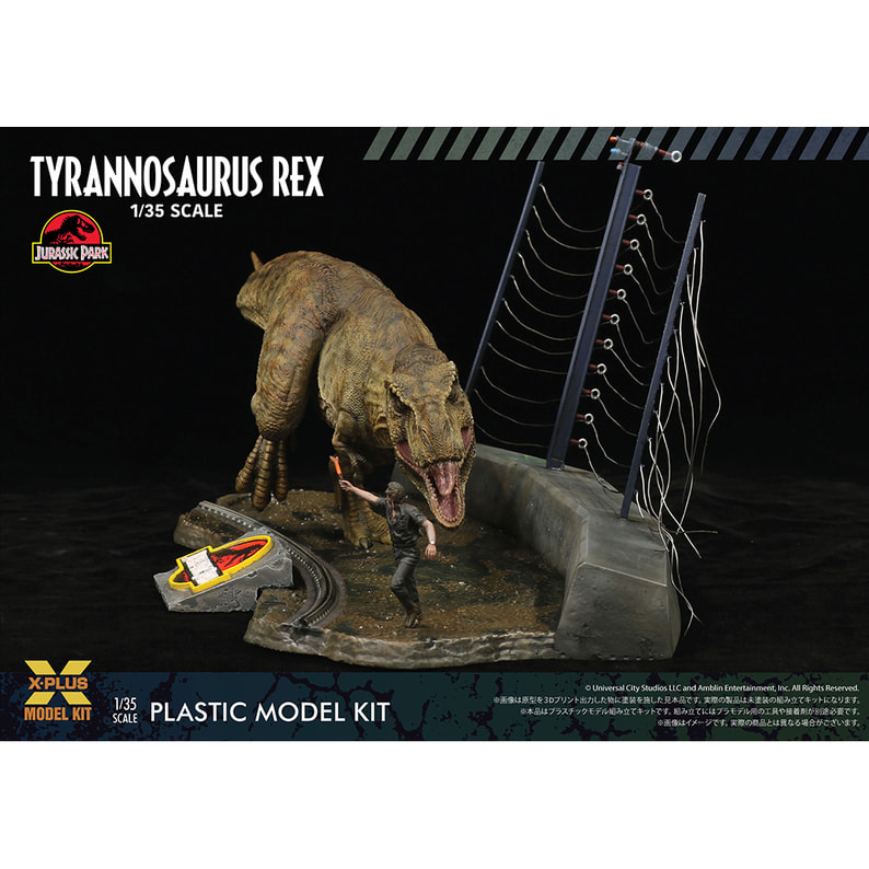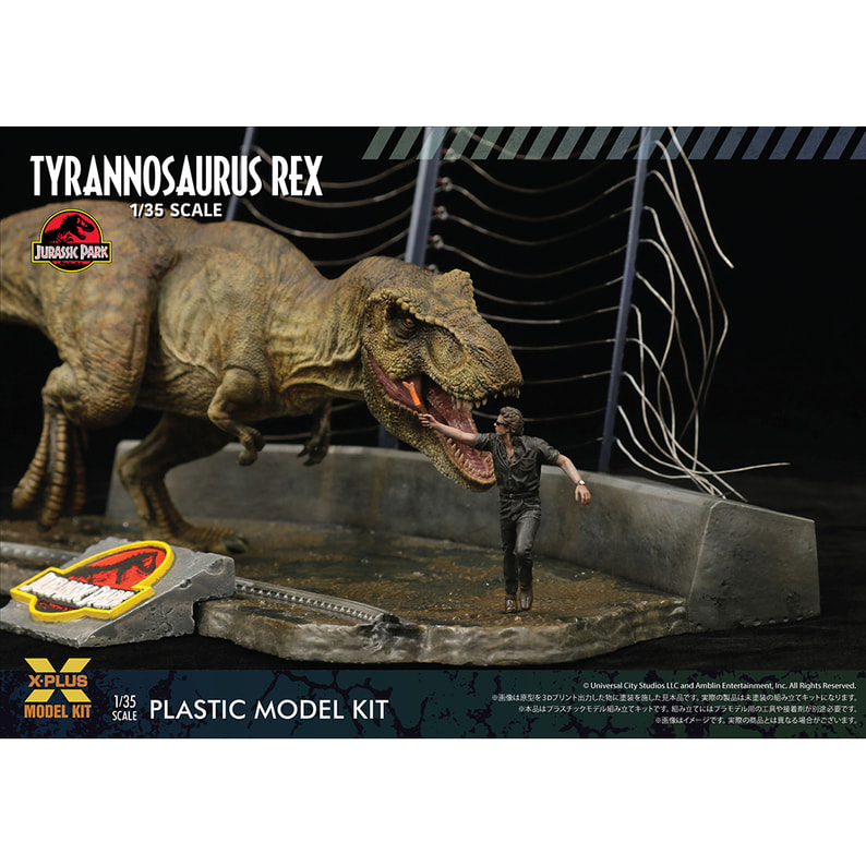 1993年公開の映画『ジュラシック・パーク』に登場するT-レックス。地響きと共に姿を現し、メインロードを訪れたツアー参加者を恐怖に陥れるシーンは、息をのみ瞬きを忘れ“本物の恐竜”を目の当たりにした瞬間でした。初めて見た時に感じた興奮や迫力をプラスチックモデルキットでお届けします。