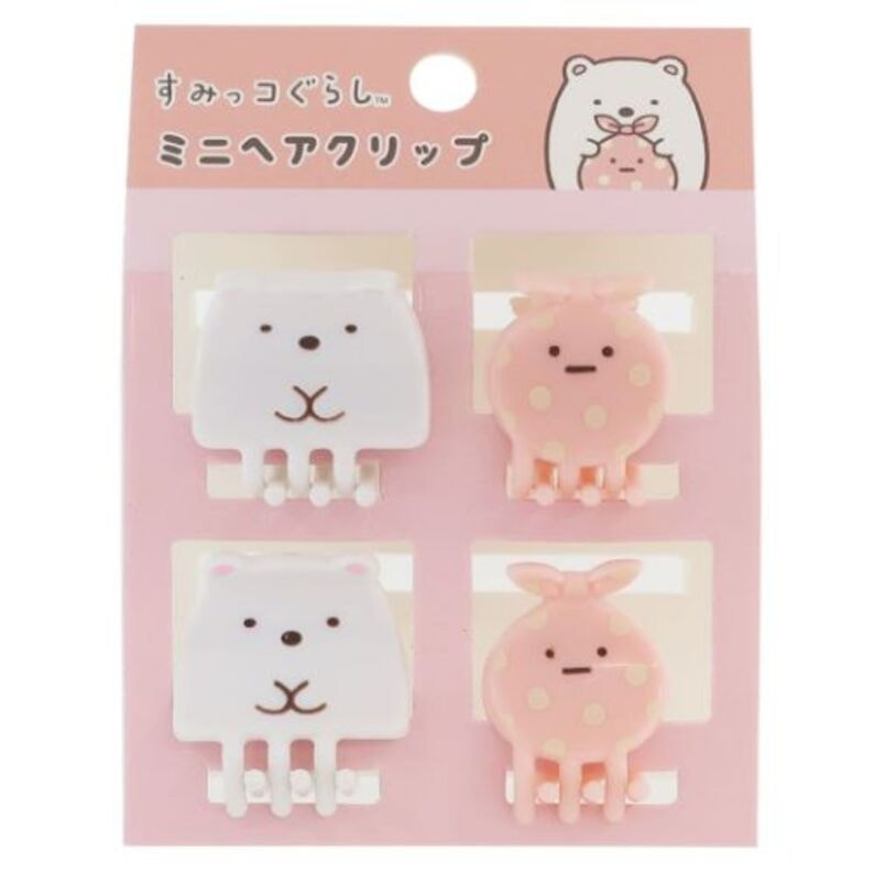 すみっコぐらしのミニヘアクリップ♪もっとヘアアレンジが楽めます♪ ●サイズ:しろくま/約2.8x2.8x2.5cm ふろしき/約2.8x2.3x2.5cm ●素材:ABS ●中国製