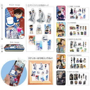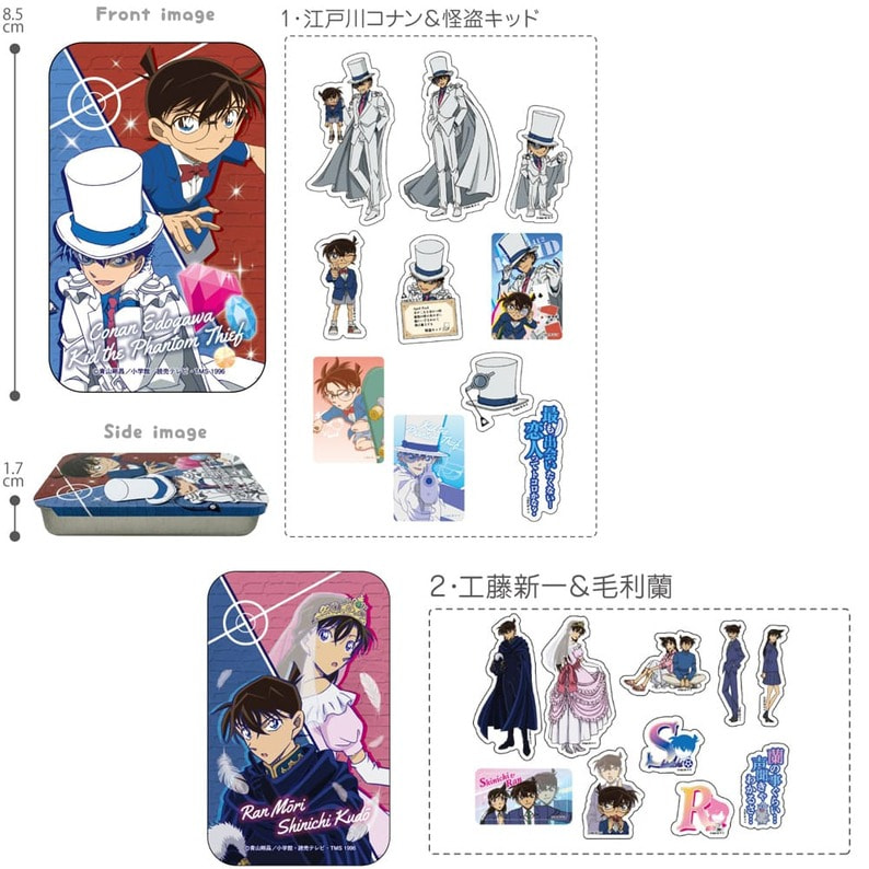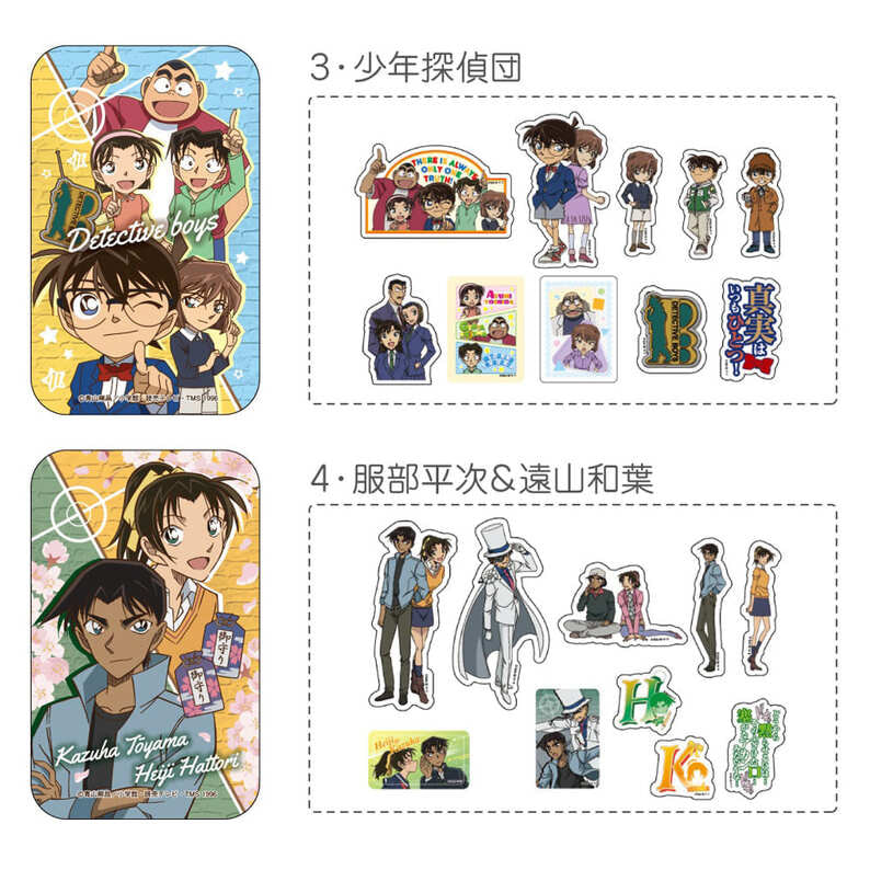 「名探偵コナン」のステッカーとスライドケースがセットになって登場! ステッカーは10枚入ってるよ! 6種類の中のどのデザインが当たるかはお楽しみ♪ ~ラインナップ(全6種)~ ・江戸川コナン&怪盗キッド ・工藤新一&毛利蘭 ・少年探偵団 ・服部平次&遠山和葉 ・大岡紅葉&伊織無我 ・黒ずくめの組織 ●商品サイズ:約H8.5×W5.3×D1.7(cm) ●素材:ケース/ブリキ、ステッカー/紙 ※画像は監修中のものとなります。デザインが多少変更となる場合がございますので、予めご了承ください。 ※全6種のうちどれか1つがランダムに入っています。複数お買い求め頂いても同じ絵柄が続けて出たり、ご希望の絵柄が出ない場合もございます。また、絵柄が重複しましても交換依頼はお受け致しかねます。 ©青山剛昌/小学館・読売テレビ・TMS 1996