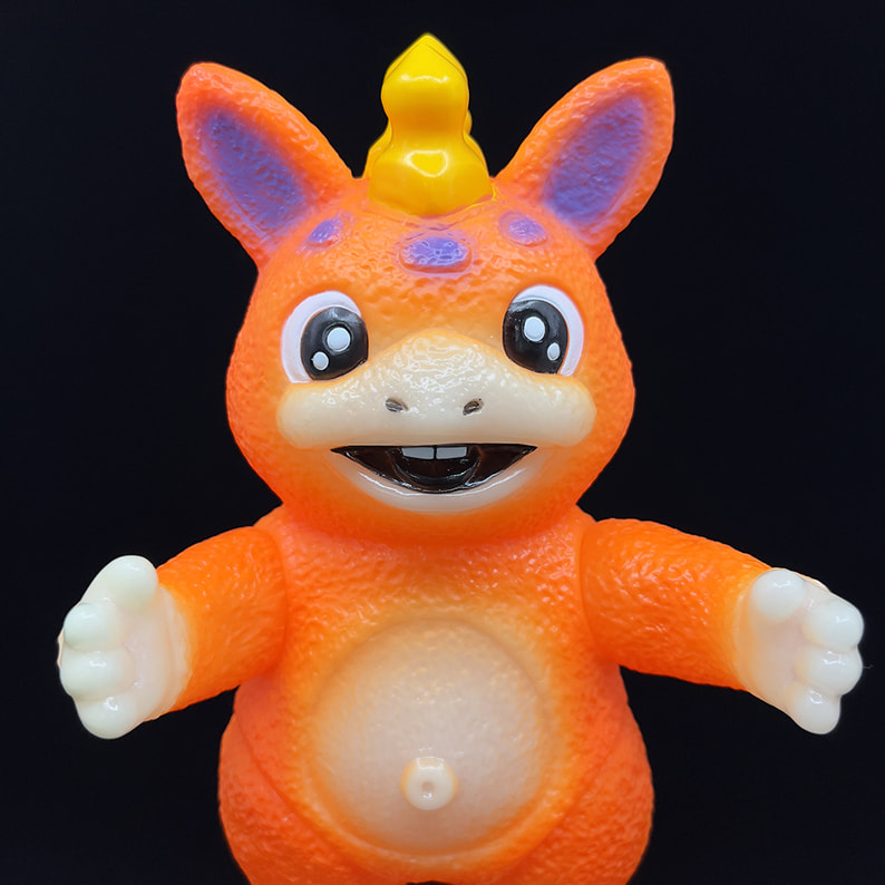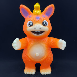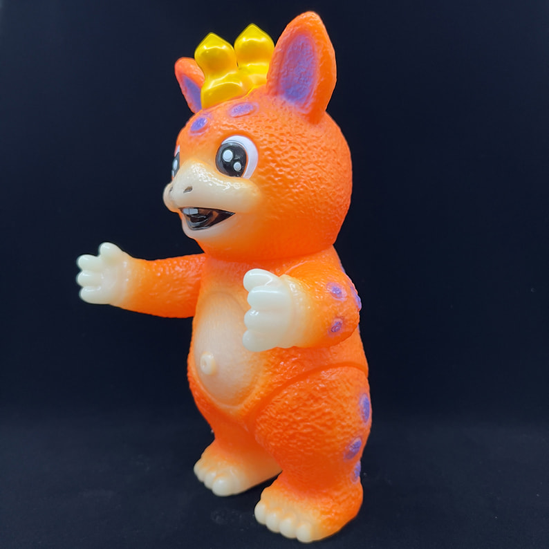 「ゴジばん」「ウルトラP」でおなじみアトリエこがねむし代表の小林英幸氏が原型を手がけたソフビ人形。マルサン神永英司社長の彩色設計により蓄光素材で暗所で発光!