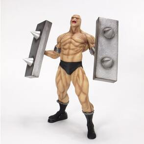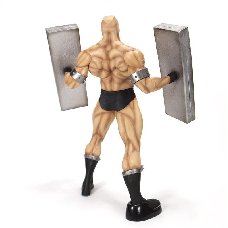 これを持ち上げるために必要な背中の筋肉では、広背筋、脊柱起立筋、肩周りでは僧帽筋、三角筋が発達していると想定し、そのバルクが見事なまでに表現するポーズでは両腕を大きく広げ今にもジャンククラッシュを発動する姿を再現。