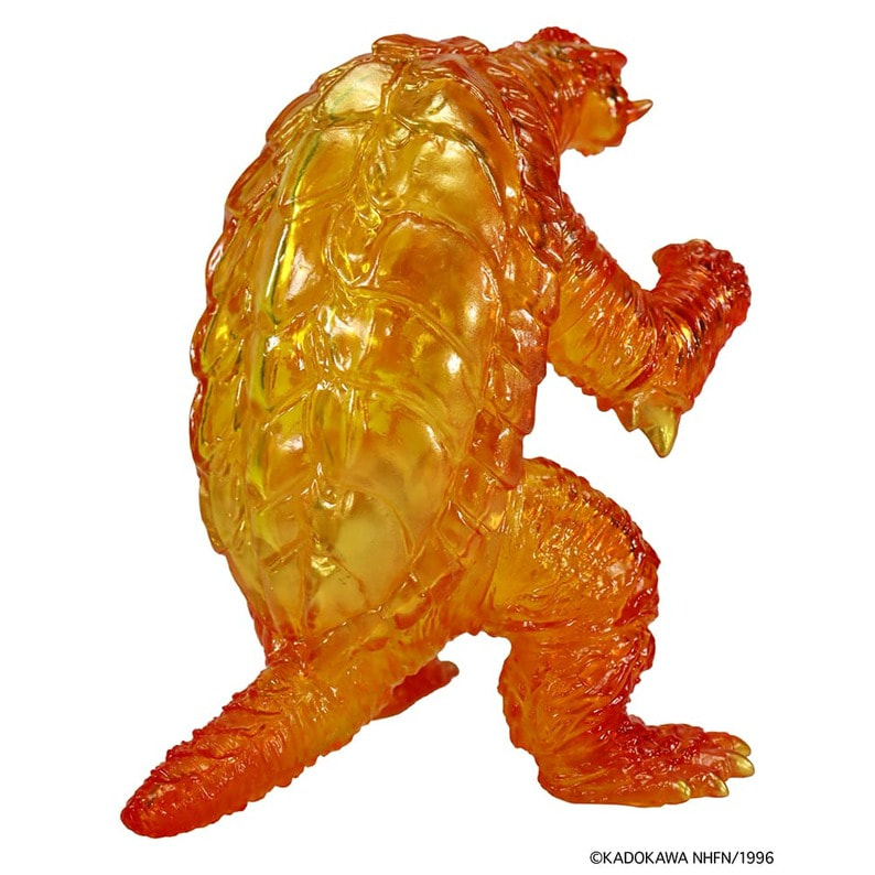 ミドルガメラから第2弾が登場!! ガメラ(1996)からは、必殺技「ウルティメイト・プラズマ」を放つ瞬間のガメラをクリアソフビにて表現。 『ガメラ2 レギオン襲来』でのガメラの頭部や甲羅などの特徴を、造形にこだわり手のひらサイズに落とし込んだミドルサイズソフビ。 ボディの中央から外側がオレンジ色になるようにグラデーション彩色を行うことで、体内にマナエネルギーが収束し、必殺技を放つ直前かのように光っているかのような質感をお楽しみ頂けます。 爪や牙・甲羅などにも吹かれたゴールドがその輝きをさらに増しています。 透明度の高いクリア成形と、美しいグラデーション彩色によるクリアソフビを、是非お手元にてお楽しみください。 ●商品サイズ:全高約13cm ●パッケージサイズ:W17×H17×D6cm ●材 質:PVC(ソフビ製) ●本体仕様:彩色済み完成品 ●梱包仕様:PP袋、紙ヘッダー ●対象年齢:15歳以上 ※掲載している写真は開発中のものです。実際の商品とは異なります。 ©KADOKAWA NHFN/1996