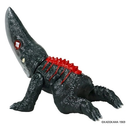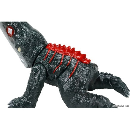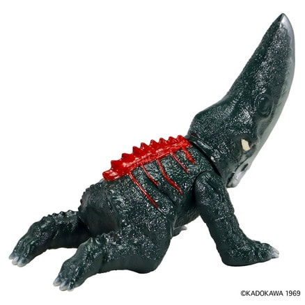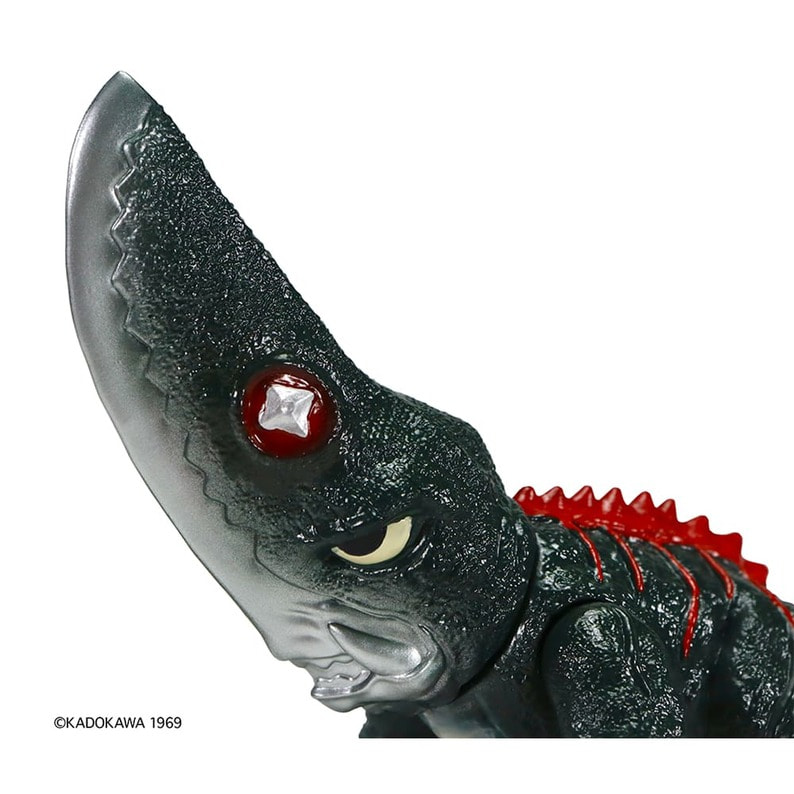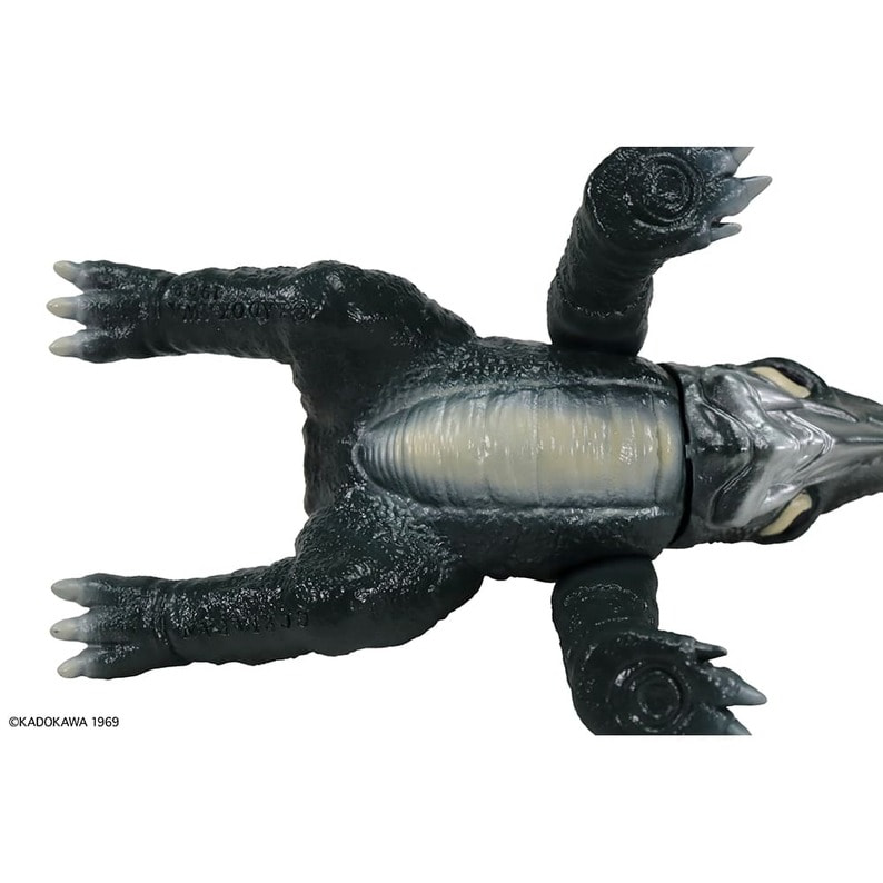 ミドルガメラ第2弾にて、大悪獣ギロンが初登場!! 『ガメラ対大悪獣ギロン』より、その包丁のような頭部や四つ足の体型など独特のフォルムで人気のギロンがミドルサイズシリーズに初登場! 左右で手裏剣発射形態・通常形態が見られる頭部や、各部のヒレなどギロンの魅力を余すことなくテクスチャ感にまでこだわりながら落とし込んだレトロデフォルメ造形。 こだわりのダークグリーンの成形に赤いラインの塗り分けが映える、「これぞギロン」と呼ぶべきスタンダードなカラーリング。 八重樫紀史氏描き下ろしのヘッダーと合わせ、大悪獣ギロンの魅力が詰まったこのソフビを是非お手元にてお楽しみください。 ●商品サイズ:全高約9cm、全長約13cm ●パッケージサイズ:W17×H17×D6cm ●材 質:PVC(ソフビ製) ●本体仕様:彩色済み完成品 ●梱包仕様:PP袋、紙ヘッダー ●対象年齢:15歳以上 ※掲載している写真は開発中のものです。実際の商品とは異なります。 ©KADOKAWA 1969