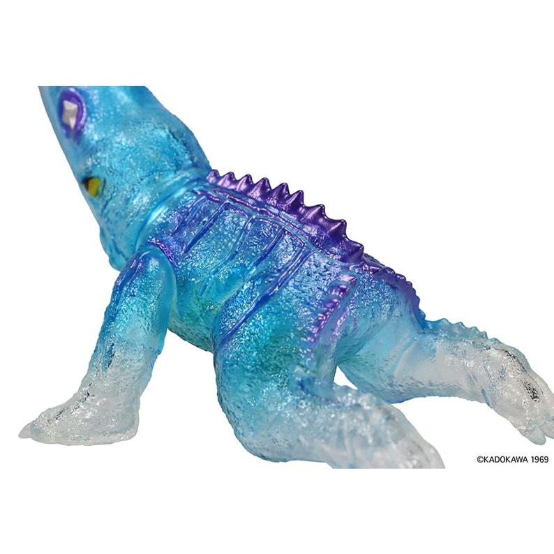 ミドルガメラ第2弾にて、大悪獣ギロンが初登場!! 劇中のギロンをイメージしたスタンダードVer.に対し、ソフビの美しさを前面に出した「クリアブルーVer.」が登場。 透明度の高いクリア成形にクリアブルーが彩色された、ギロンらしさもありレトロソフビらしさもある美しいカラーリング。 背中などに吹かれたメタリックパープル・お腹に吹かれたゴールドなどがその色合いをさらに引き立てます。 透明で美しい包丁のような頭部は、クリアソフビだからこそ楽しめる質感となっています。 是非お手元にて、クリアのギロンをお楽しみください。 ●商品サイズ:全高約9cm、全長約13cm ●パッケージサイズ:W17×H17×D6cm ●材 質:PVC(ソフビ製) ●本体仕様:彩色済み完成品 ●梱包仕様:PP袋、紙ヘッダー ●対象年齢:15歳以上 ※掲載している写真は開発中のものです。実際の商品とは異なります。 ©KADOKAWA 1969