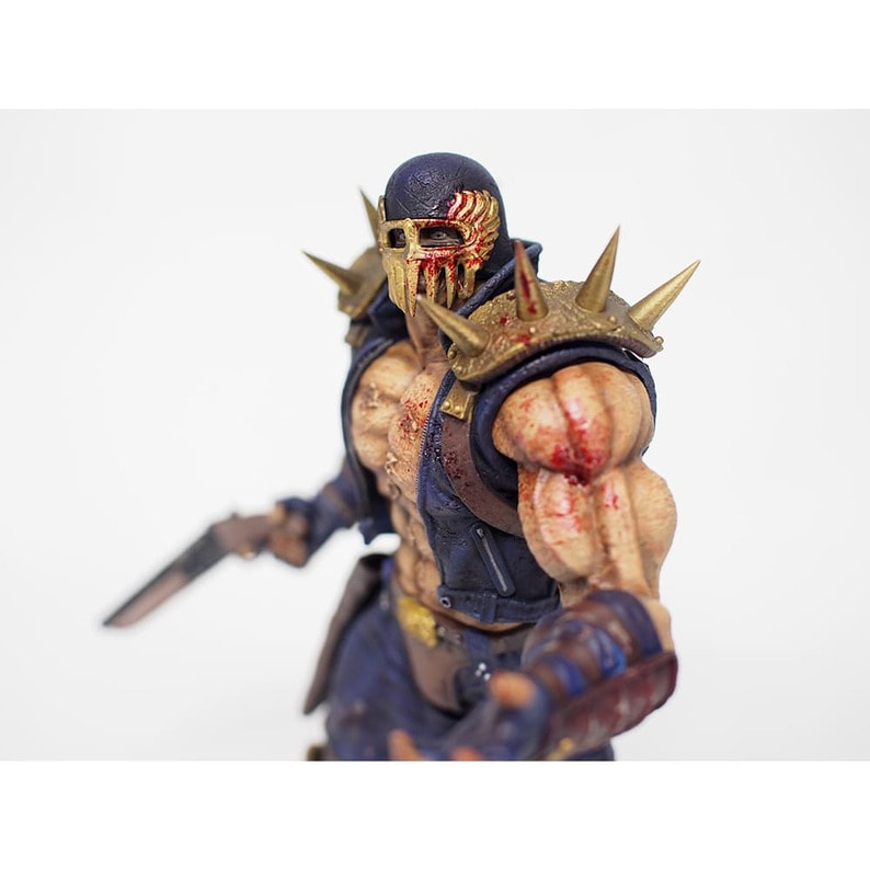 「北斗の拳」の世界観を、当時少年だった大人たちに向けて立体造形で表現するにあたり、原哲夫の独特の筆致となる輪郭線、線の強弱によりキャラクターの存在感や緊迫感、空気感までが伝わってくる…。あの時に感じたそんな描写を立体造形でも再現できないか?と、顔や体型はもちろん、空気感や雰囲気までも劇中に寄せ、あの激闘の空気感を再現するため、塗装方法にもこだわった、「北斗の拳」の世界を徹底的に表現するフィギュアシリーズ。