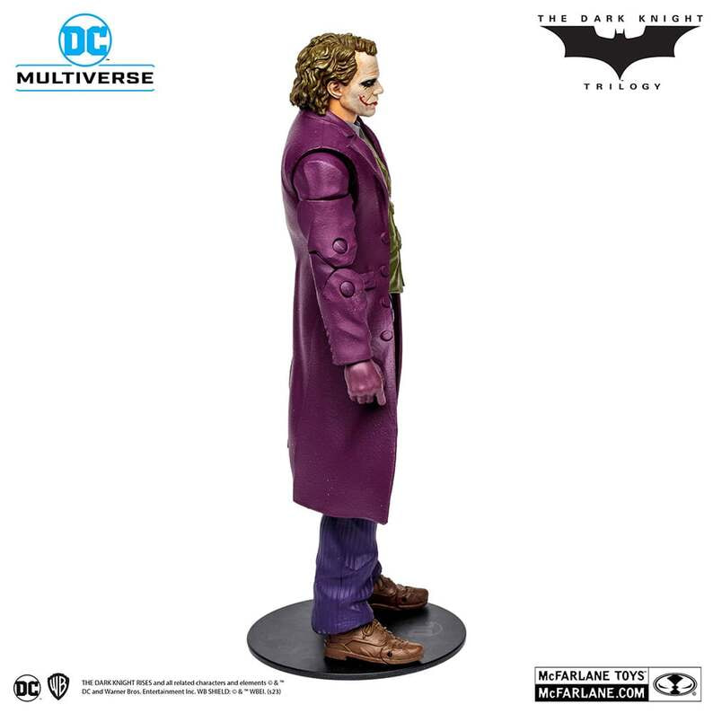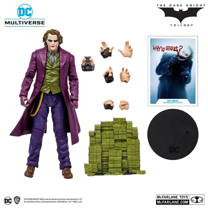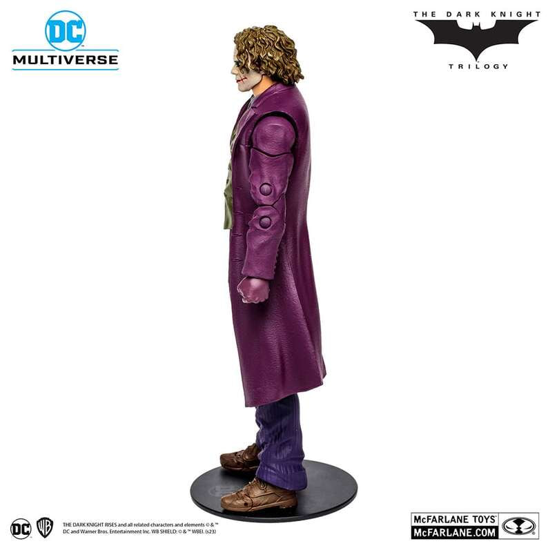 高い造形力とクオリティーに定評のあるマクファーレン・トイズがお贈りする、7インチ・アクションフィギュア「DCマルチバース」シリーズ。鬼才クリストファー・ノーラン監督による映画3部作『ダークナイト・トリロジー』より、ジョーカーがラインナップ! 2020年より、マクファーレン・トイズとワーナー&DCコミックスが強力タッグを組んで「DCマルチバース」シリーズをスタート!世界観の再現にこだわった造形と豊富な可動域の7インチ・アクションフィギュアを展開。さらに多彩なアクセサリーや、キャラクタープロフィール入りのカードなど、コレクター心を刺激する付属品も。バラエティ豊かなラインナップで、ファンを魅了するフィギュアが続々と登場している。 『ダークナイト・トリロジー』に登場する、ヒース・レジャーが演じたジョーカーを、全高約18cm、約22箇所が可動するアクションフィギュアとして立体化!造形や質感にこだわり、細部に至るまで再現。アクセサリーとして、札束の山が付属する。さらに、「DCマルチバース」『ダークナイト・トリロジー』シリーズの各フィギュアには、ビルドアップ・フィギュアのパーツが付属!バットマン、ジョーカー、トゥーフェイス、スケアクロウの各フィギュアに付属されるビルドアップパーツをすべて揃えると、ベインが完成するぞ!パッケージはそのまま飾ってもカッコいいウィンドウボックス仕様だ。 ●サイズ:高さ約18cm ●可動ポイント:22箇所 ●パッケージ:ウィンドウボックス ●付属品(アクセサリー):札束、キャラクターカード、台座、ベイン ビルドアップパーツ #02、 ベイン差し替え用ハンドパーツ(×6) ●対象年齢:12歳以上 ※画像は試作品のため実際の製品と異なる場合があります。 ※簡単な組み立て作業を必要とする場合があります。