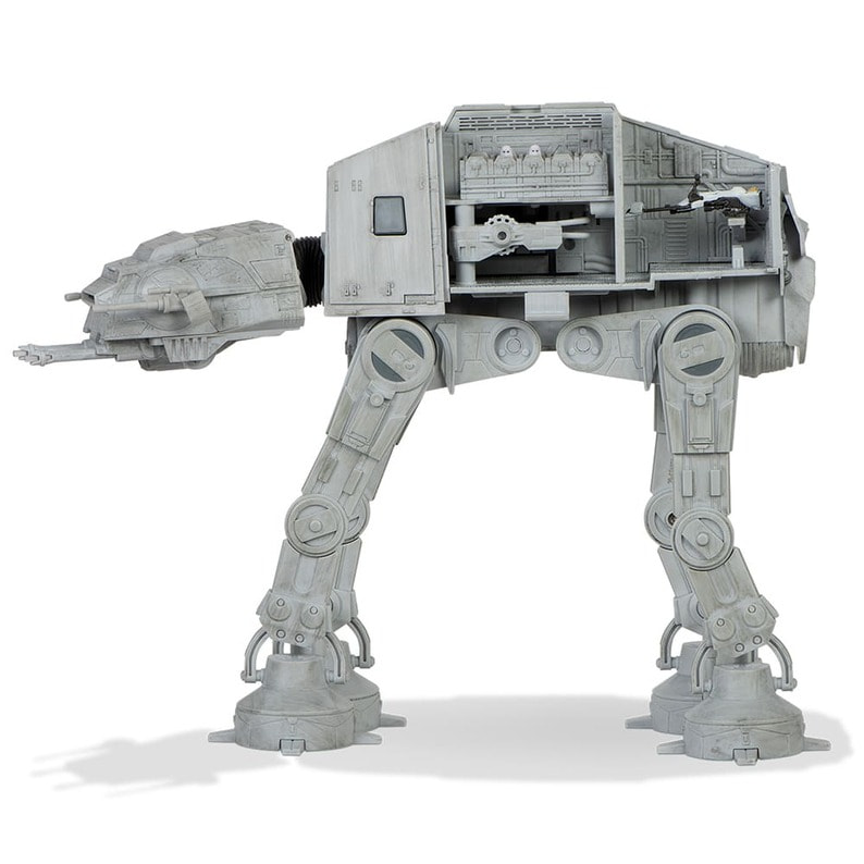 『スター・ウォーズ』に登場するAT-ATウォーカーを、高さ約24cm×全長約29cmで立体化。小さいながらも細部までこだわりの造形で再現している。全高約2.5cm、手足が可動する、ルーク・スカイウォーカー(ホス)、ヴィアーズ将軍、AT-ATパイロット、2体のスノートルーパーのアクションフィギュアが付属。また、フィギュアを乗せられるスピーダー・バイクが付属する。機体のヘッドと4つの脚は可動。脚は関節まで可動するので、さまざまな動きをつけることができる。ヘッドにあるコクピットには、3体のフィギュアを乗せることが可能だ。また、機体の側面は取り外しができ、フィギュアを乗せて船内で遊ぶことができるぞ。スピーダーを格納するスペースや、搭乗用のケーブルが備わっているのも嬉しいポイント。ケーブルは歯車を回すことで下ろしたり引き上げたりできる。機体下部に内蔵するロープを使えば、劇中でルークが奇襲するシーンを再現可能だ!さらにライトアップ機能とサウンドギミックを搭載。機体上部と側部にあるボタンを押すことで、ヘッドや機体内部をライトアップさせたり、劇中の効果音や台詞を発動できるぞ。パッケージは、そのまま飾ってもカッコいいウィンドウボックス仕様となっている。