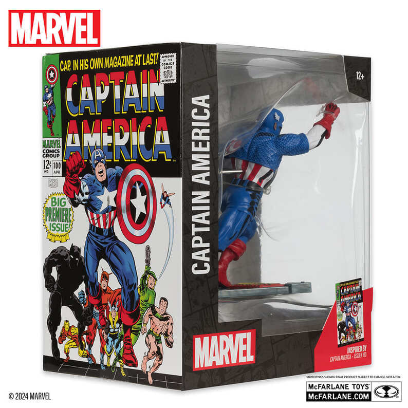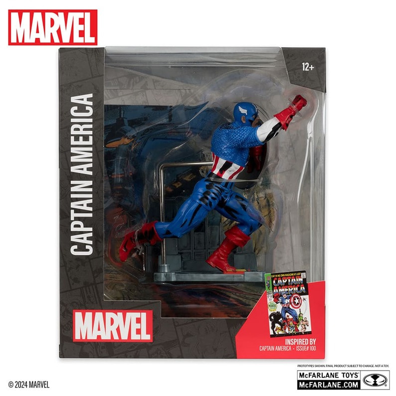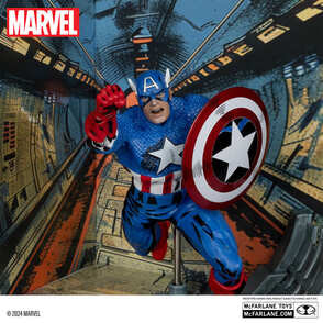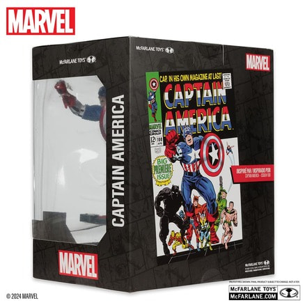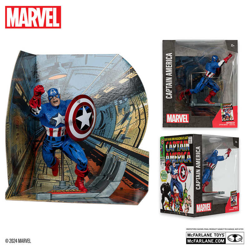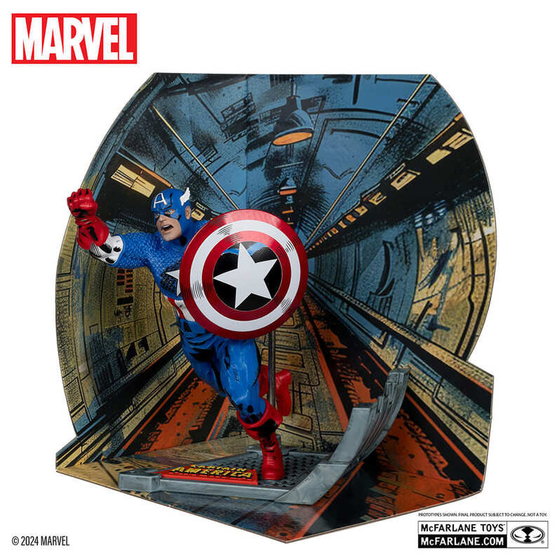 高い造形力とクオリティーに定評のあるマクファーレン・トイズが、『マーベル・コミック』を待望の立体化!名作カバーアートを立体化する1/10スケール「シーン・フィギュア」より、キャプテン・アメリカ(ジャック・カービー/Captain America Vol.1 #100)が登場だ!