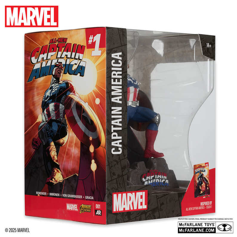 高い造形力とクオリティーに定評のあるマクファーレン・トイズが、『マーベル・コミック』を待望の立体化!名作カバーアートを立体化する1/10スケール「シーン・フィギュア」より、キャプテン・アメリカ(スチュアート・イモネン/All-New Captain America #1)が登場だ!