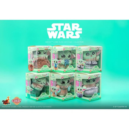 シンプルで愛らしいフォルムと集めやすいサイズが特徴的なデフォルメフィギュア「コスビ」シリーズのデザインをモチーフに、『スター・ウォーズ/グローグー:キューテスト・イン・ザ・ギャラクシー』デザインのグローグーをぬいぐるみ化!大きさは高さ約12~16cmで、キーチェーンとして使用できるストラップとリングがついているぞ。パッケージは、そのまま飾っても可愛いウィンドウボックスだ。