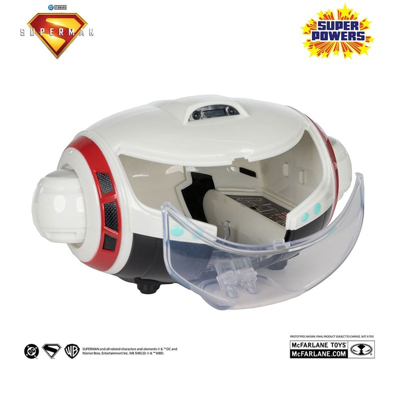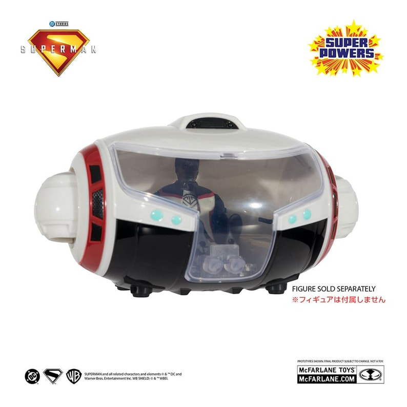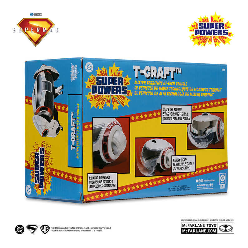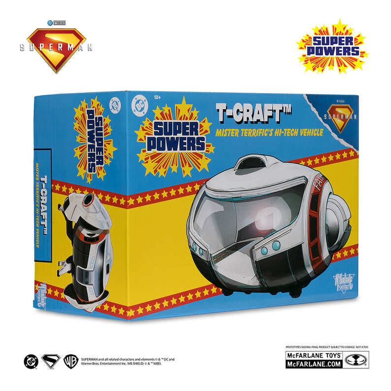 ジェームズ・ガン監督の映画『スーパーマン』に登場する、ミスター・テリフィックのビークル「Tクラフト」を、4インチスケールのビークルとして立体化!80年代風のノスタルジックなデザインながら、細部までこだわり造形している。コクピットは開閉し、同スケールのフィギュアを乗せて遊ぶことができるぞ。また、左右のスラスターは回転する。パッケージは、懐かしさを感じるデザインが印象的なクローズドボックス仕様だ。