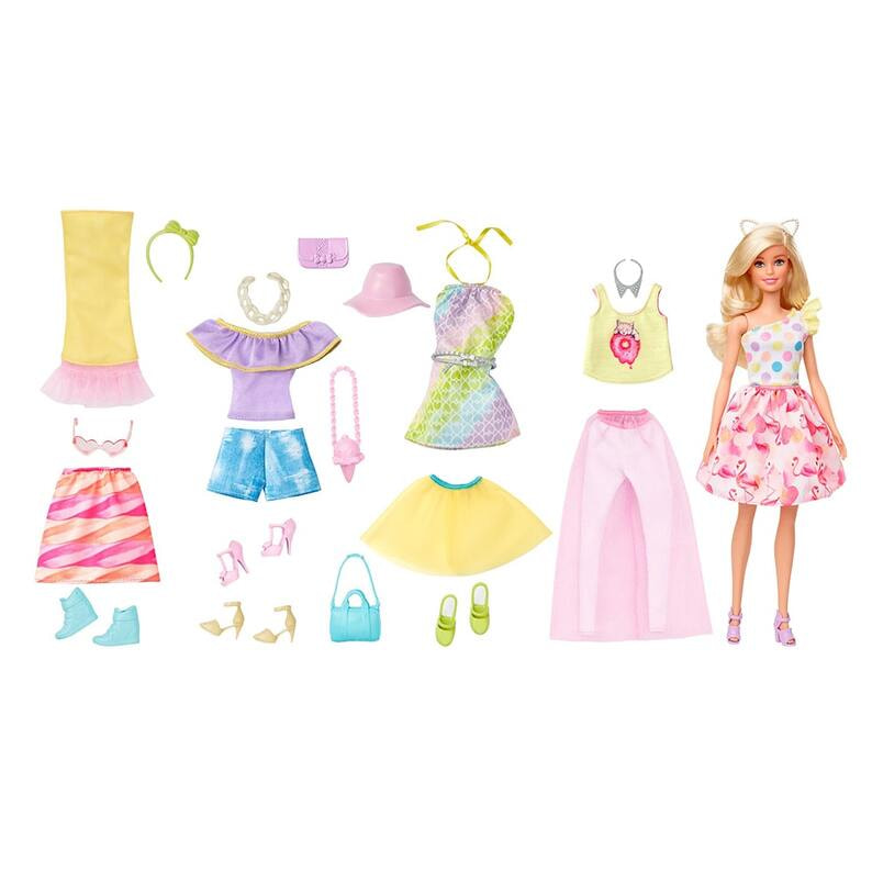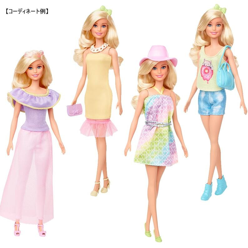 バービー ドレスアップもカジュアルも!40以上のコーデが楽しめるかわいいファッションセット! このバービードールとファッションのセットには、40種類以上のコーディネートを作るためのファションやアクセサリーが含まれています。 重ね着したり、組み合わせをかえたり、自分だけのスタイリッシュなデザインを作ることができます。 バービーは、カラフルなトップスとスカート、流行の靴、そしてかわいいネコ耳カチューシャを身に着けています。 9つの洋服は、着せ替え遊びを刺激し、そのいくつかは全く新しいコーディネートをつくるために重ね着で遊ぶことができます。 4足の靴と9つのアクセサリーで、スタイリングの可能性は無限に広がります! ●パッケージサイズ:幅508×高さ324×奥行き64(mm) ●パッケージ形状:箱 ●対象年齢:3歳以上 ●中国製 (C)2022 Mattel. All Rights Reserved.