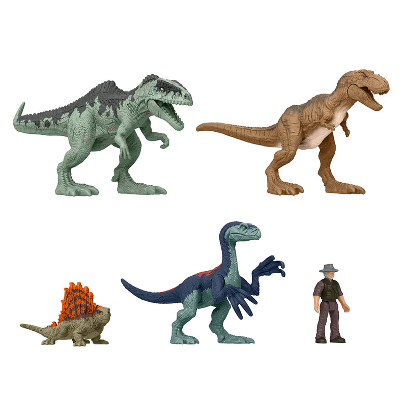 【フィギュア内容】T-レックス、ディメトロドン、ギガノトサウルス、テリジノサウルス、アラン(人間)