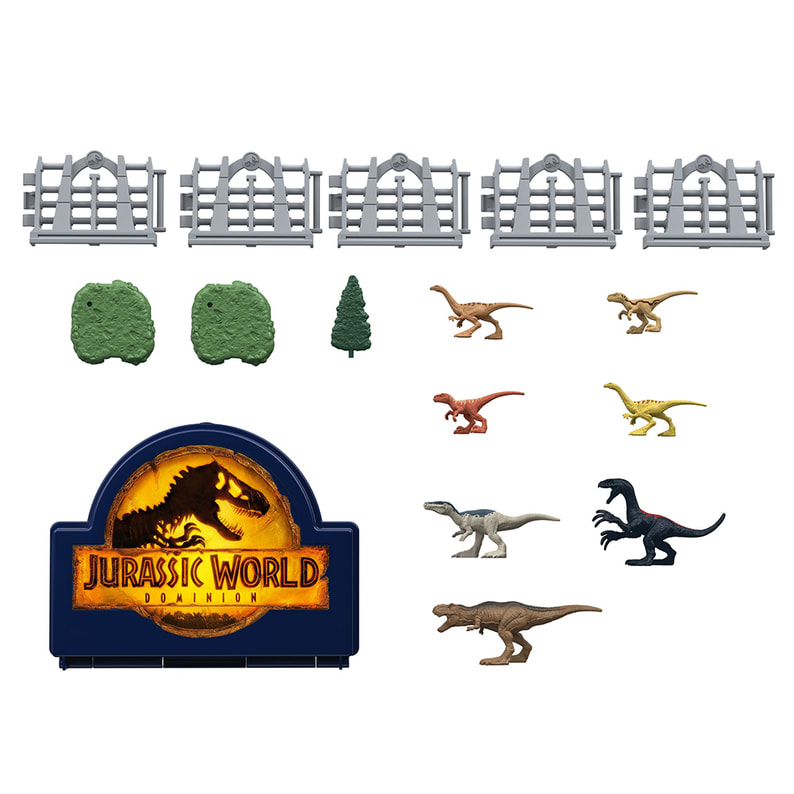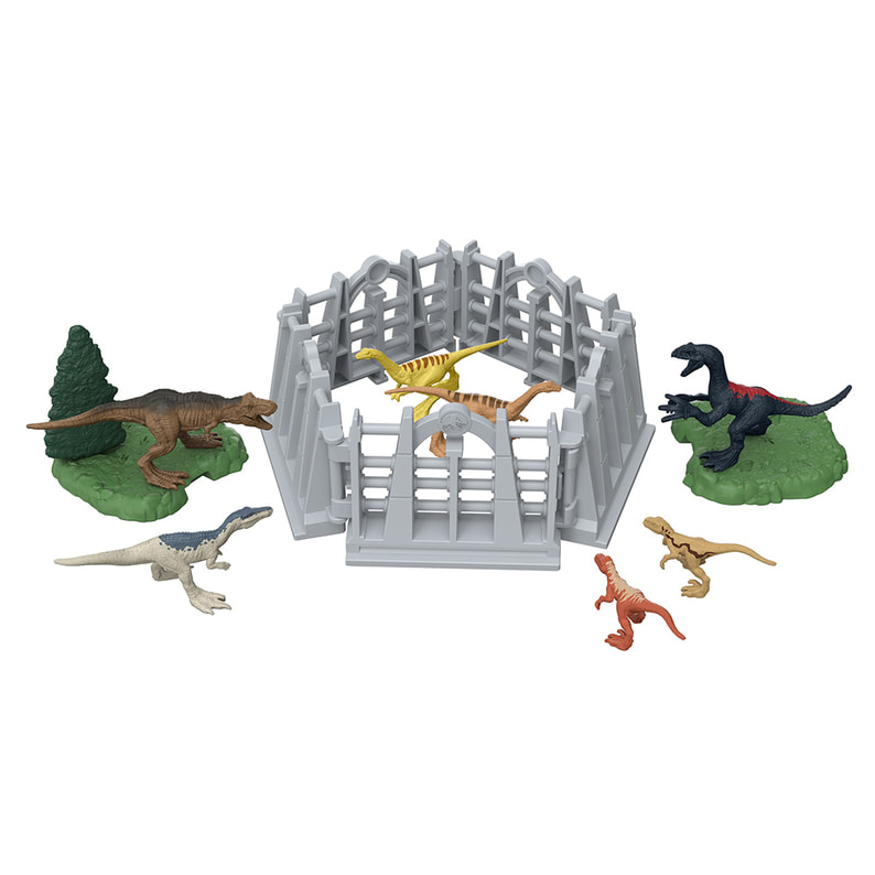 恐竜の他、フェンスや木のオブジェなども含めた15個のミニフィギュアとパーツのセットが含まれたバンドルセット!