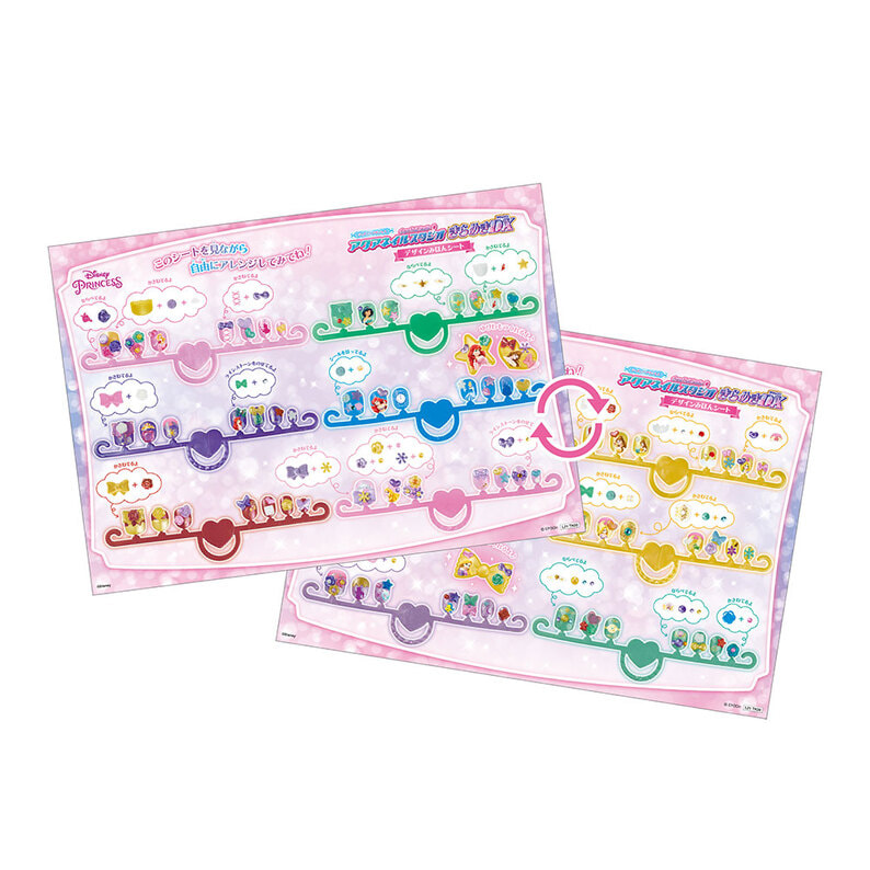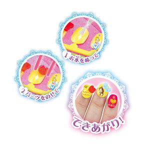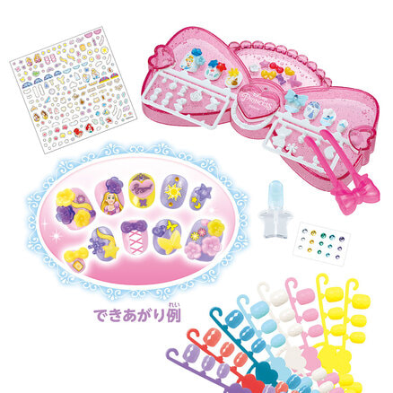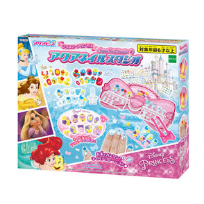 お水をぬってデコパーツをのせるだけ!色とりどりのネイルチップ、たくさんのデコパーツとおしゃれなネイルシール、キラキラのラインストーンで、ディズニープリンセス(ラプンツェル、シンデレラ、ベル、アリエル)をイメージしたステキなネイルをデザインできます。 デザインしたネイルはツメにつけて遊ぶことができます。両面テープでつけるので、簡単につけ替えて楽しむことができます。 【付属品】ワークテーブル、キラキラネイルパーツ7色 計8個、デコパーツ約130個、ネイルシール、ラインストーンシール、ピンセット、はけ付きボトル、両面テープ×2 ●パッケージサイズ:幅250×高さ210×奥行き50(mm) ●対象年齢:6歳以上 ●中国製 (C)Disney(C)EPOCH