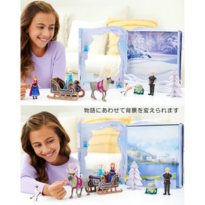 ディズニー映画『アナと雪の女王』の6キャラクター(アナ、エルサ、クリストフ、オラフ、トロール、スヴェン)のミニドールがセットになっているクラシックストーリーブックです。 ストーリーブックからミニドールを全て取り出すと、パッケージのブックの背景の両面を使用して、映画のシーンの再現ができます。さらにお子さまのストーリーテリングがより楽しくなる、組み立てができる2人乗りのそりや木も含まれています。 お子さまが大好きな映画のシーンを再現したり、ワクワクするような冒険をするのに最適なギフトです。 ●パッケージサイズ:幅254×高さ57×奥行き305(mm) ●対象年齢:3歳以上 ●中国製 Disney Element (C)DisneyMattel Element (C)2023 Mattel