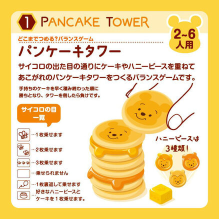 くまのプーさん 遊ぶ×飾るパンケーキのインテリアトイ! ①遊ぶ×飾るインテリアトイ 3種類のハニーとパンケーキで遊んでも眺めても楽しめる。 プーさんのインテリアトイ。 ②重ねてパンケーキタワー! サイコロの出た目の通りにパンケーキやハニーピースを重ねてタワーを作るバランスゲーム。 ③表面VS裏面リバーシ! 焼き面でコマを分けてひっくり返します。 どちらかがたくさんパンケーキを焼けるか数を競うリバーシ。 ④じっくり脳トレパズル! 頭の体操になるパズルをたっぷり10問収録! ●パッケージサイズ:幅80×高さ290×奥行き80(mm) ●対象年齢:3歳以上 ●中国製 (C)Disney.Based on the“Winnie the Pooh”works by A.A.Milne and E.H.Shepard.