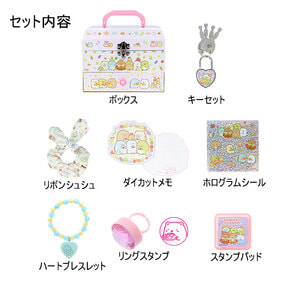 【付属品】ボックス本体:1個/キーセット:1個/ダイカットメモ:10枚/ホログラムシール:1個/スタンプパッド:1個/リングスタンプ:1個/リボンシュシュ:1個/ハートブレスレット:1個