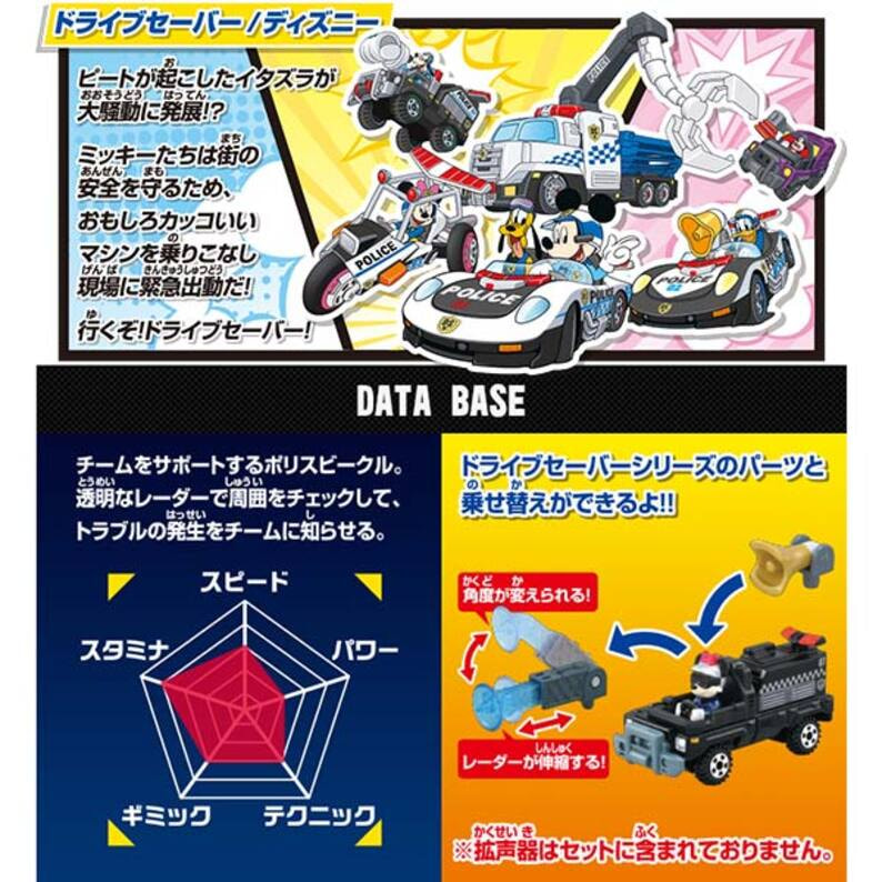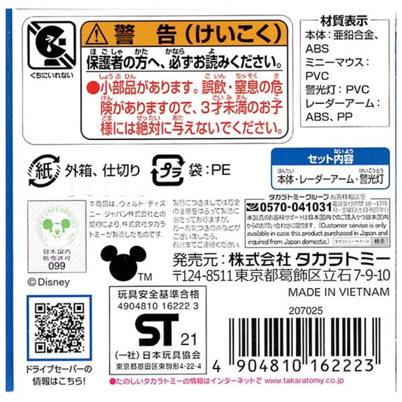 チームをサポートするポリスビークル。 透明なレーダーパーツを搭載したミニーマウスのトミカです。 レーダーパーツは取り外し可能で、既発売のドライブセーバーシリーズDS-01~05のビークルとも連動可能です。 ※ギガクレーンポリスキャリーは除きます。 ●セット内容:本体(1)、レーダーアーム(1)、警光灯(1) ●パッケージサイズ:W80×H80×D40mm ●対象年齢:3歳以上 ※セット内容以外は含まれておりません。 ※画像と実際の商品は多少異なる場合があります。予めご了承ください。 ©Disney