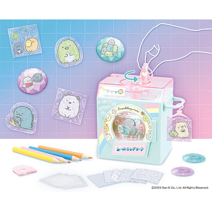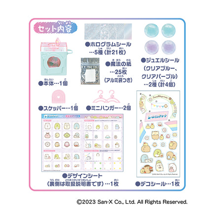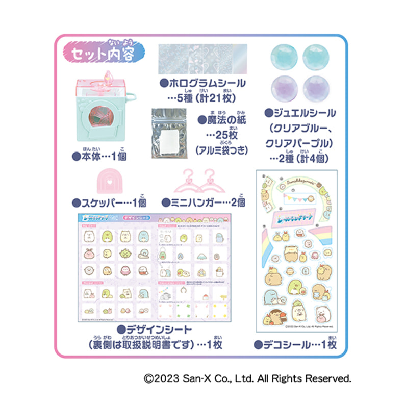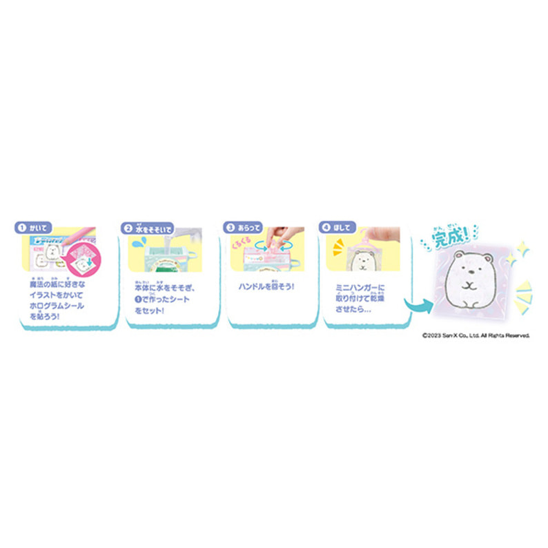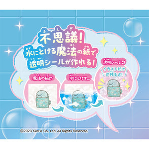 水に溶(と)ける魔法の紙(まほうのかみ)で作る、不思議なシールメーカーです! 自分でかいたすみっコたちのかわいいクリアシールが作れます。 作り方は、①好きなイラストをかき、②水で洗って、③ミニハンガーに干(ほ)して乾燥(かんそう)させたら、できあがり! 他にも、メッセージを書いてプレゼントシールにしたり、名前を書いてお名前シールとしても使うことができます。 ●商品サイズ:W129×D80×H150㎜ (C)2023 San-X Co., Ltd. All Rights Reserved.