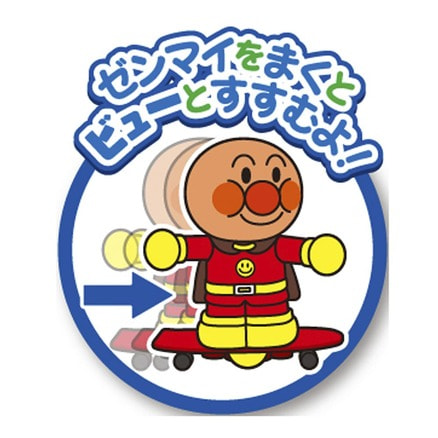 スケボーに乗ったアンパンマンが、勢いよくまっすぐ進んだり、クルっと回ったり、楽しい動きをします。 ●パッケージサイズ:約幅220mm×高さ150mm×奥行き60mm ●パッケージ重量:約90g ●対象年齢:3才~ ●中国製 (C)やなせたかし/フレーベル館・TMS・NTV