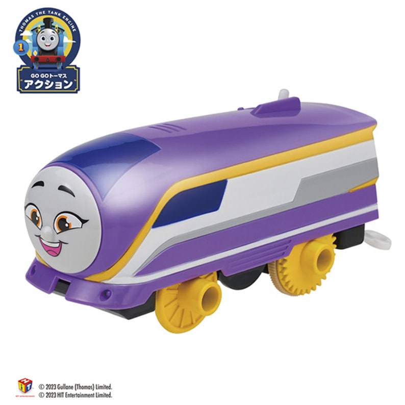きかんしゃトーマスの新シリーズから、超特急「カナ」の車両が登場です。 「カナ」は、日本の出身です。 ★「カナ」の動力車です。プラレールのレールを走行して遊べます。 ★GOGOトーマスアクションセット(別売)といっしょに遊べます。 ※レール、電池は別売です。 ●パッケージサイズ:W70×H185×D50mm ●対象年齢:3歳~ ●電池:単3形アルカリ乾電池×1(別売) ●商品内容:GOGOカナ(動力車)(1) ●対象年齢:3歳~ ©TOMY ©2023 Gullane (Thomas) Limited. ©2023 HIT Entertainment Limited