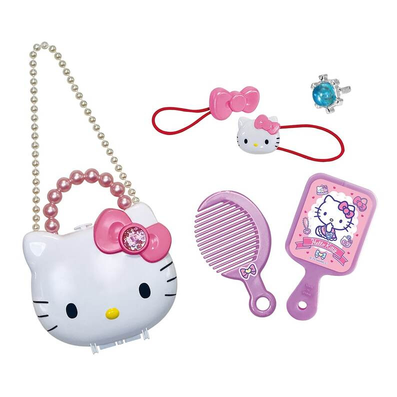 キティちゃんの顔型バッグとおしゃれな小物のセットです。 ミラー&コームでおしゃれに。ヘアゴムや指輪でかわいくコーデしておでかけしましょう。 ●サイズ:約H280×W212×D53(mm) ●対象年齢:3歳~ ●中国製 (C) 1976, 2023 SANRIO CO., LTD. TOKYO, JAPAN (L)