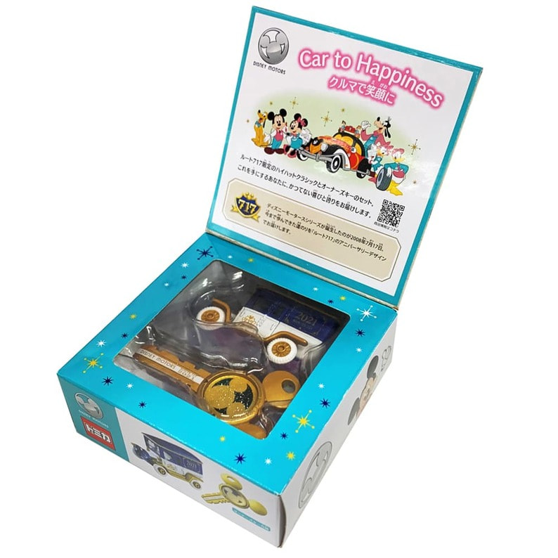 オーナーズキーと、限定デザインの車がセットになった商品です。 ディズニーモータースシリーズが誕生したのが2008年7月17日。 今まで歩んできた道のりを「ルート717」のアニバーサリーデザインでお届けいたします。 ●パッケージサイズ:約幅100mm×高さ100mm×奥行き40mm ●対象年齢:3歳以上 (C)Disney