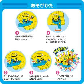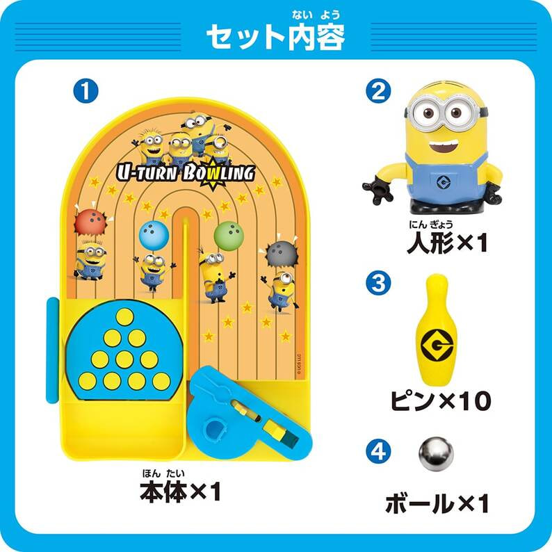 ボールがくるっとUターン! どこでもあそべるミニオンのボウリングゲームです。 ボウリングのピンが立てやすいピンスタンド機構付き! ●商品サイズ:約幅190mm×高さ55mm×奥行き140mm ●パッケージサイズ:約幅210mm×高さ190mm×奥行き50mm ●パッケージ重量:約206g ●パッケージ形状:サック箱 ●対象年齢:4歳以上 ●プレイ人数:1~2人 ●中国製 Minions Franchise(C)Universal City Studios LLC. All Rights Reserved.