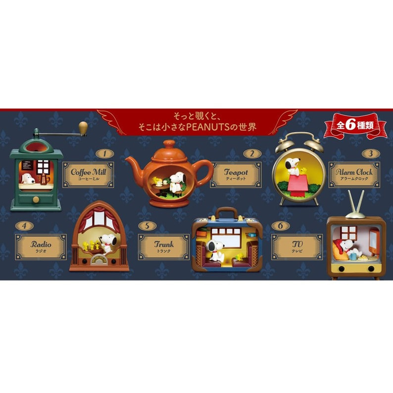 中を覗くとPEANUTSの世界が広がる、おしゃれなジオラマフィギュアです。 ~ラインナップ(全6種)~ 1、Coffee Mill 2、Teapot 3、Alarm Clock 4、Radio 5、Trunk 6、TV ●パッケージサイズ:W70×H115×D60(mm) ●対象年齢:15歳以上 ●中国製 ※こちらの商品は全6種のうちどれか1つがランダムに入っています。複数お買い求め頂いても同じ絵柄が続けて出たり、ご希望の絵柄が出ない場合もございます。また、絵柄が重複しましても交換依頼はお受け致しかねます。 (C)2024 Peanuts Worldwide LLC www.snoopy.co.jp