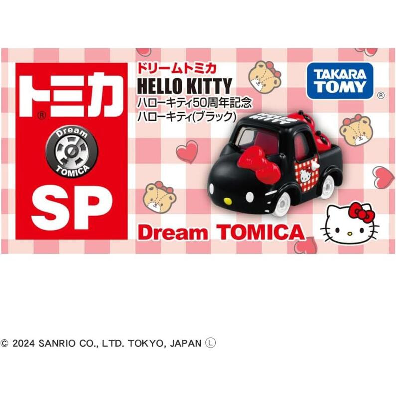 ドリームトミカに「ハローキティ50周年記念 ハローキティ(ブラック)」が登場! ●パッケージサイズ:約幅78mm×高さ41mm×奥行き39mm ●対象年齢:3歳以上 ●ベトナム製 (C)TOMY(C)2024 SANRIO CO., LTD. TOKYO, JAPAN(L)