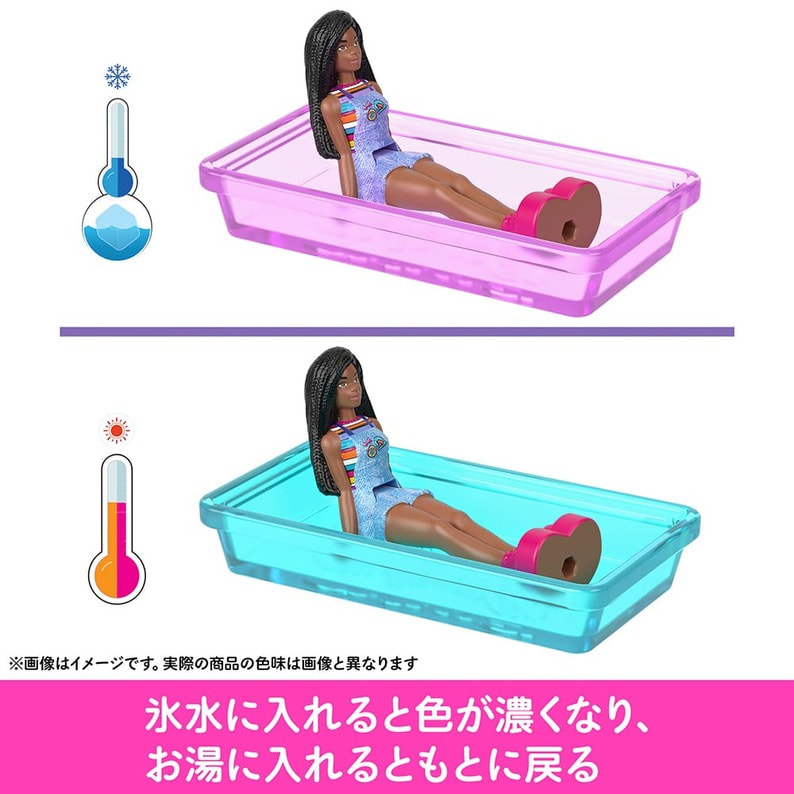 ミニバービーランドシリーズの水の温度で色が変わる、ドリームキャンパーとマイクロドールのセット! ピンクのドリームキャンパーは扉が開閉し、付属のマイクロドールやミニバービーランドのマイクロドールを乗せることができます。 キャンピングカーの屋根は外してプールに!このプールは、氷水に入れると紫に、お湯にいれると元の水色に戻ります。 ミニバービーランドの他ののりものやハウス、マイクロドールを集めて自分のミニバービーランドを作ろう! ●パッケージサイズ:約幅140×高さ152×奥行き51(mm) ●パッケージ形状:台紙 ●対象年齢:6歳以上 ●中国製 ※画像はイメージです。実際の商品とは多少異なる場合がございますので、予めご了承下さい。 (C)2024 Mattel. All Rights Reserved.