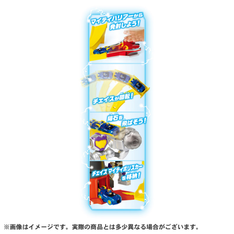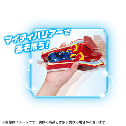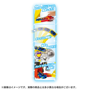 タワーパーツ×4、ロボットパーツ×2、レール×4、隕石×1、マイティハリアー×1、チェイス マイティポリスカー(チャージアップ)×1、取扱説明書×1