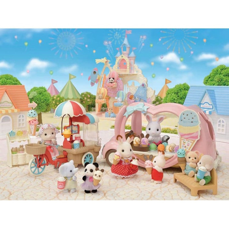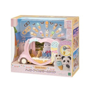 カラフルでおいしそうなアイスや小物が30コ以上ついた、アイスクリーム屋さん遊びが楽しめるセットです。 ウサギモチーフのピンク色のアイスクリームの移動販売車です。 ディッシャーでアイスをコーンへ盛り付けて、チョコをトッピングできます。 トッピングのチョコはかわいいお耳型!いろんな形のチョコをトッピングして、ウサギアイスやネコアイスやパンダアイスをつくることができます。 コーンは人形の手に持たせることができます。ワゴンの運転席は取り外してベンチとして使用できます。 冷蔵ケースをひっくり返すと座席に変身!最大4にん乗りの乗用車としても遊ぶことができます。 冷蔵ケースをはずすと下には小物を片付けることができます。 【セット内容】 本体、運転席、冷蔵ケース、アイススタンド、ディッシャーケース、アイスクリーム×10、コーン(大)×6、コーン(小)×4、ウサギ耳チョコ×2、ネコ耳チョコ、パンダ耳チョコ、ディッシャー、森のおはなし ●パッケージサイズ:W290×H250×D140(mm) ●パッケージ形状:箱 ●対象年齢:3歳以上 ●中国製 ※画像はイメージです。実際の商品とは多少異なる場合がございますので、予めご了承下さい。 ※本商品のセット内容以外は付属しません。 (C)EPOCH