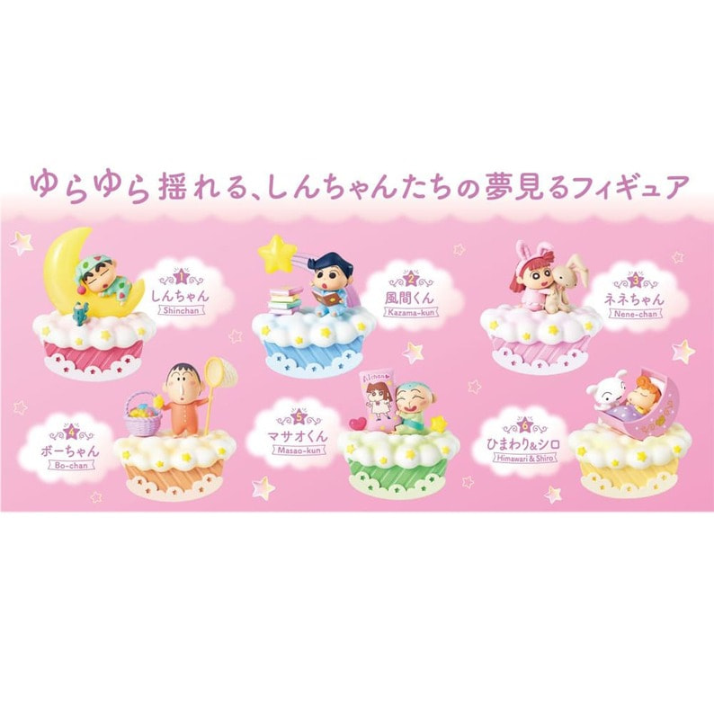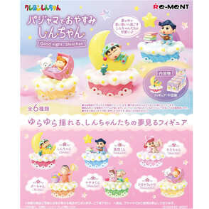 パジャマ姿のしんちゃんたちがかわいいフィギュアが新登場! ゆりかご型の台座はゆらゆら揺らせるよ! ~ラインナップ(全6種)~ 1、しんちゃん 2、風間くん 3、ネネちゃん 4、ボーちゃん 5、マサオくん 6、ひまわり&シロ ●パッケージサイズ:W70×H115×D70(mm) ●対象年齢:15歳~ ●中国製 ※全6種のうちどれか1つがランダムに入っています。複数お買い求め頂いても同じキャラクターが続けて出たり、ご希望のキャラクターが出ない場合もございます。また、キャラクターが重複しましても交換依頼はお受け致しかねます。 ©臼井儀人/双葉社・シンエイ・テレビ朝日・ADK